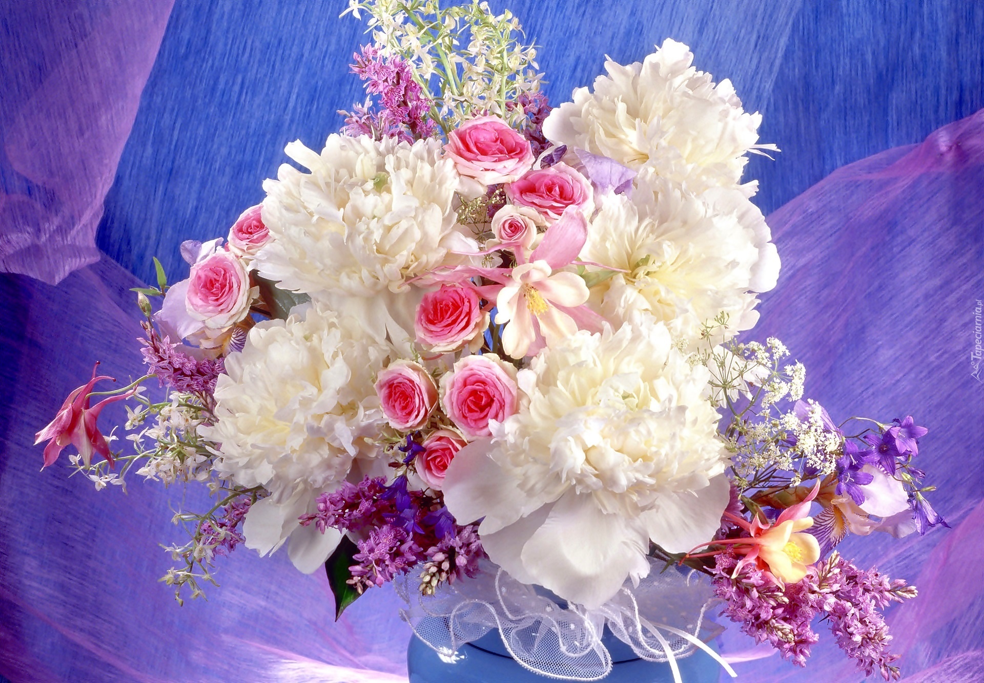 Edytor tapety: Piwonie, Róże, Bukiet, Kwiatów