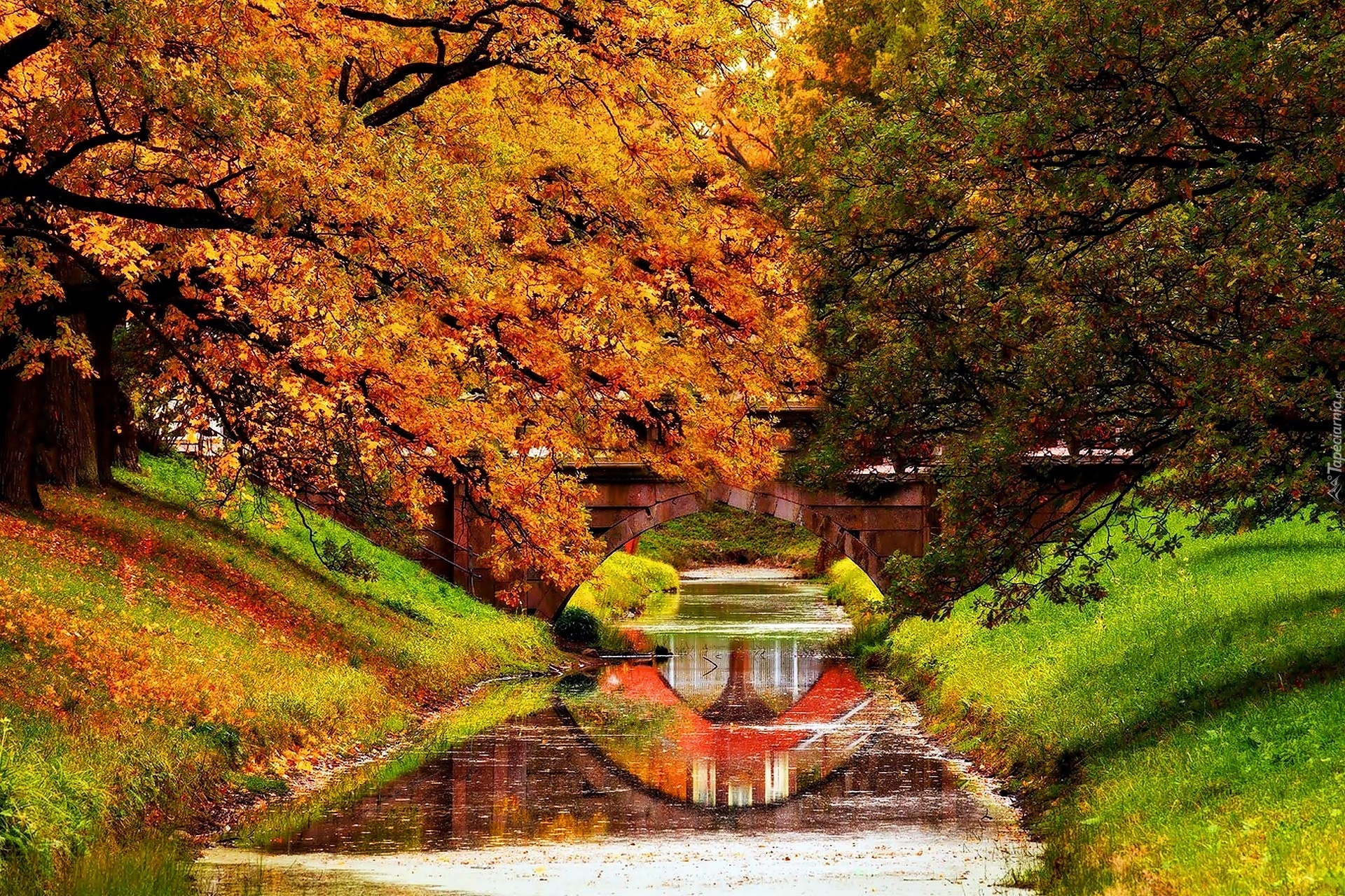 Edytor tapety: Jesień, Drzewa, Rzeka, Most, Odbicie