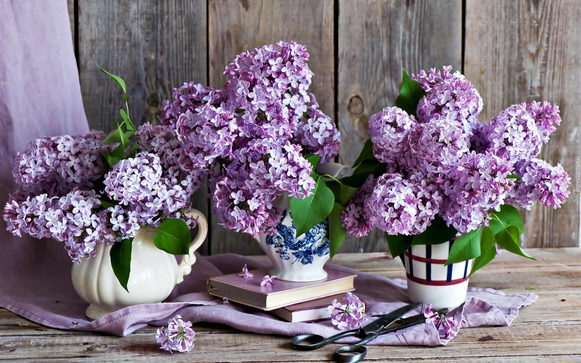 Edytor tapety: Bukiety, Kwiatów, Bzy, Książki, Nożyce