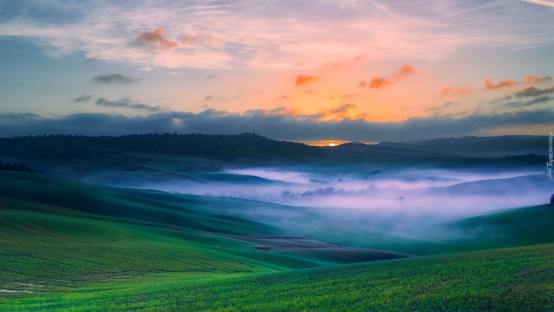 Edytor tapety: Włochy, Toskania, Pola, Mgła