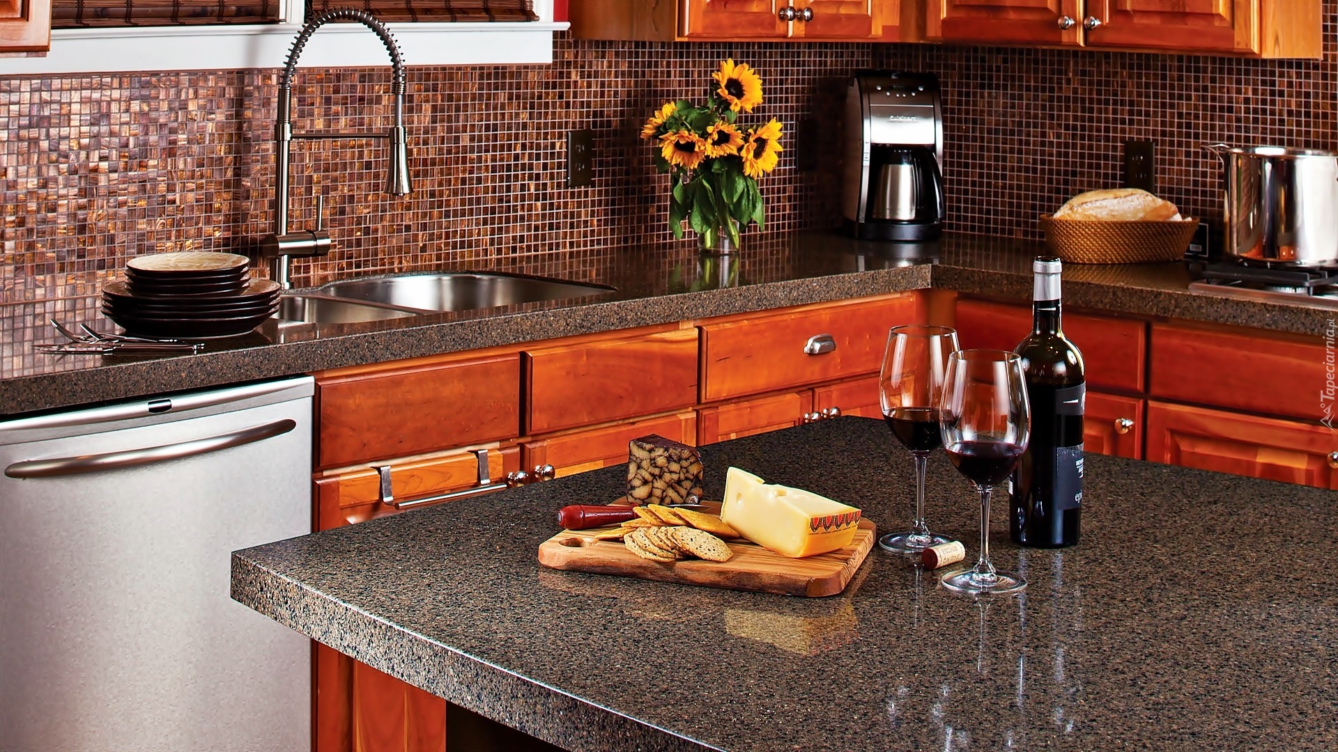 Edytor tapety: Kuchnia, Bukiet, Słoneczników, Wino
