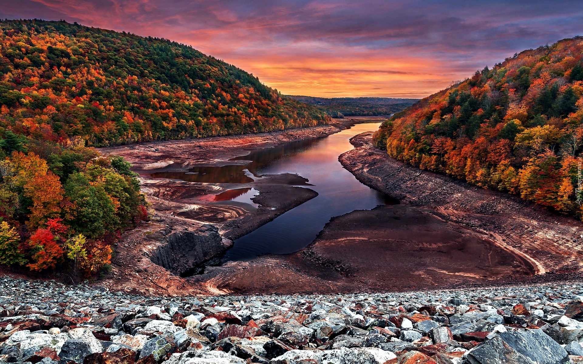 Edytor tapety: Jesień, Zatoka, Jezioro, Las, Kamienie