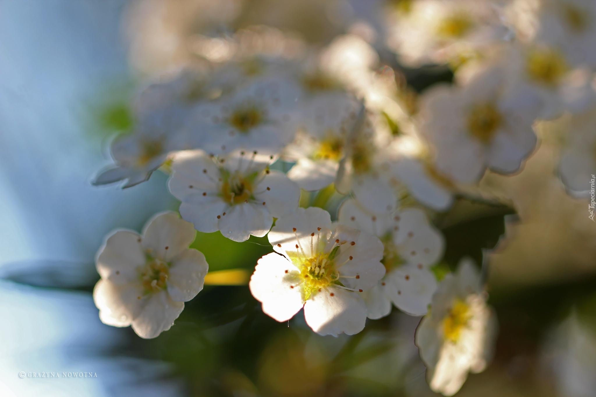 Edytor tapety: Tawuła, Białe, Kwiaty, Krzew