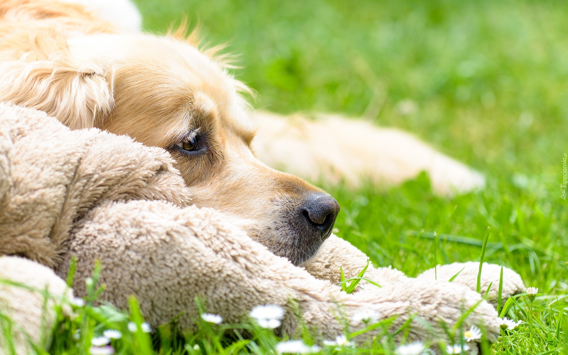 Edytor tapety: Pies, Łąka, Włochacz, Golden Retriever