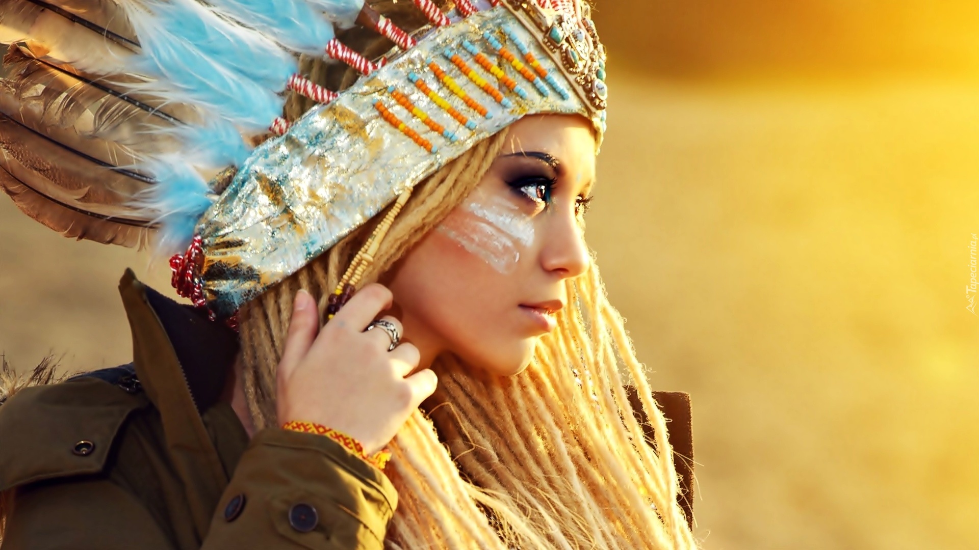 Edytor tapety: Kobieta, Indianka, Pióropusz