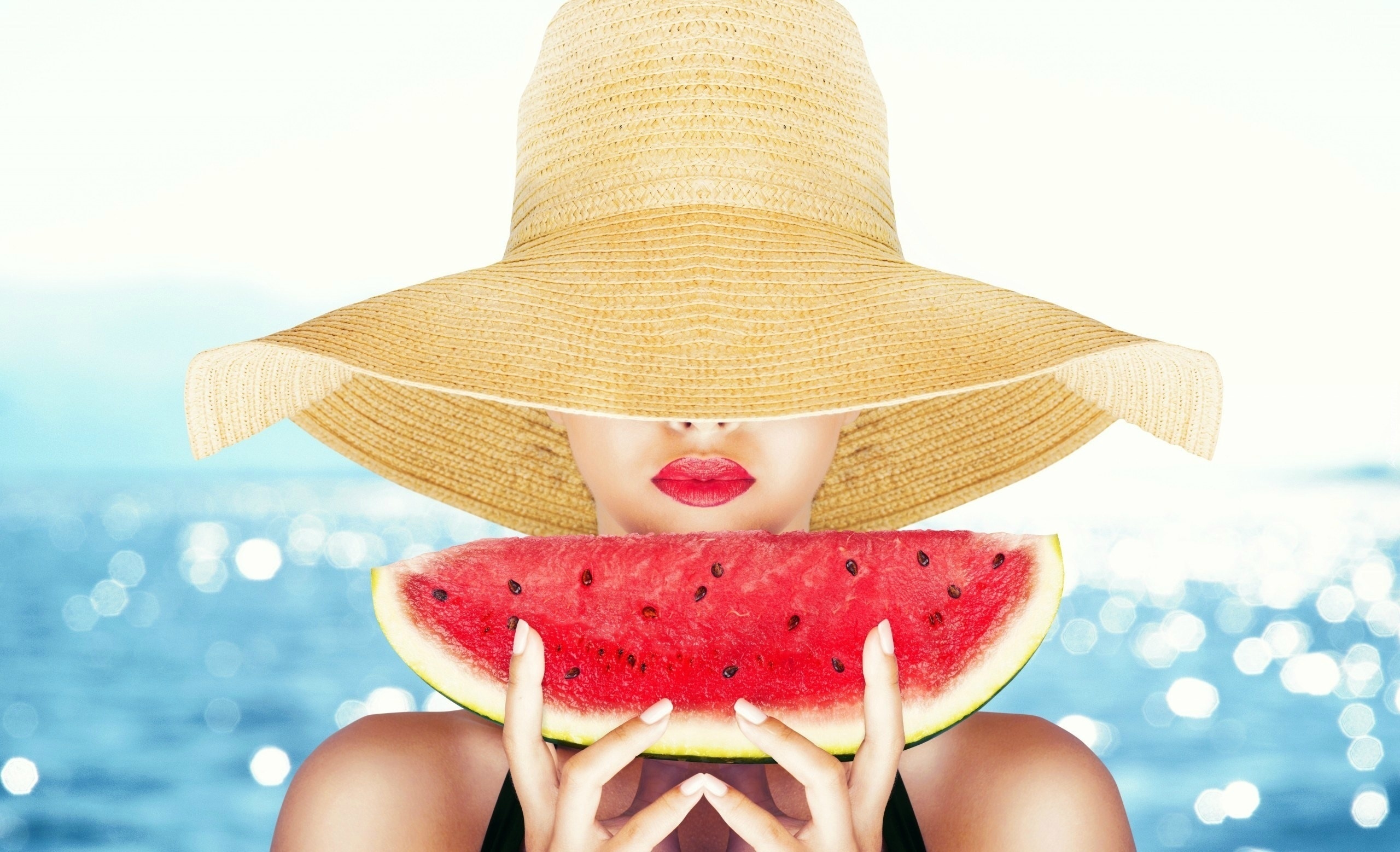 Edytor tapety: Kobieta, Arbuz, Lato