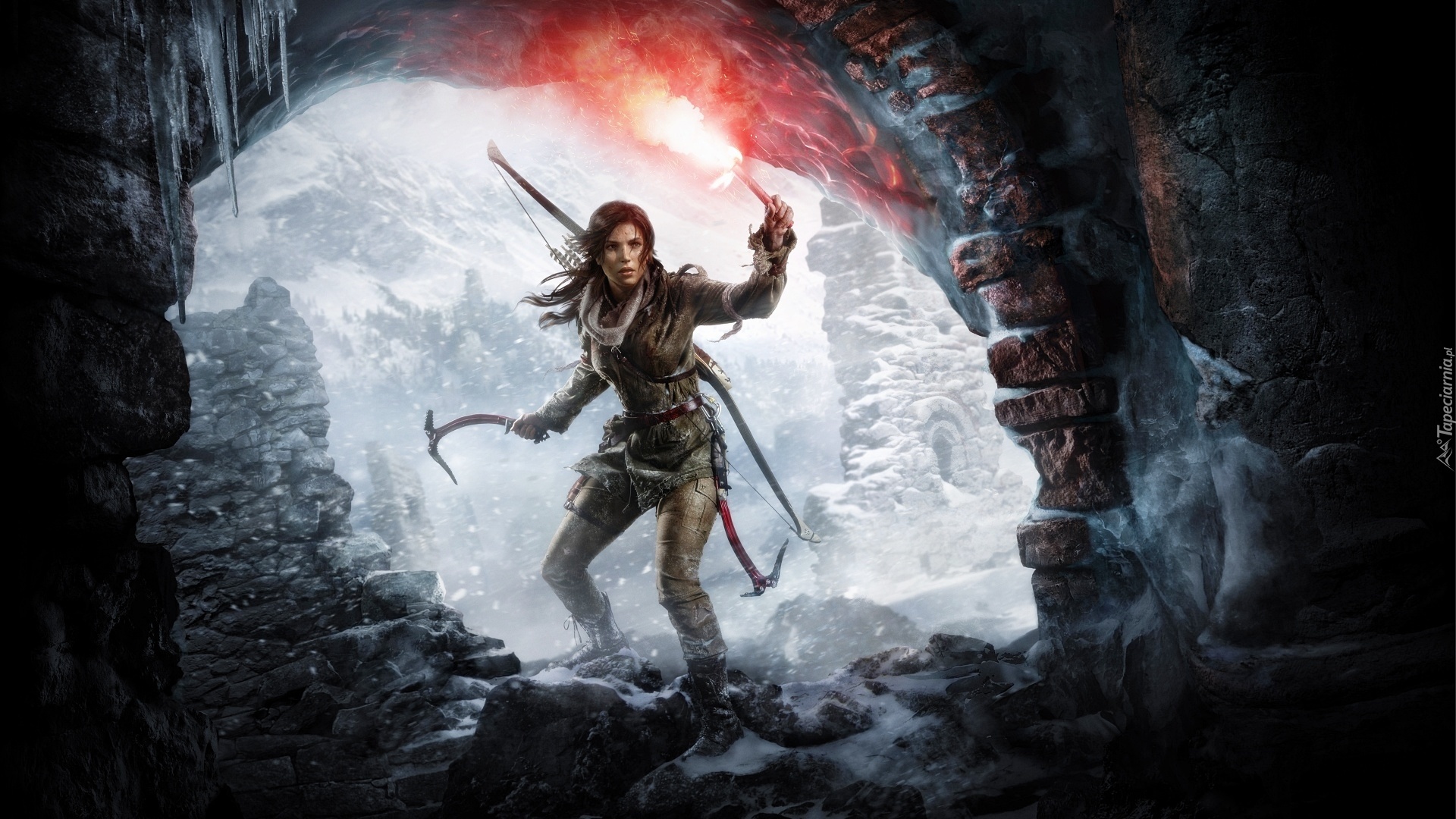 Edytor tapety: Zima, Góry, Jaskinia, Kobieta, Wojowniczka, Tomb Raider
