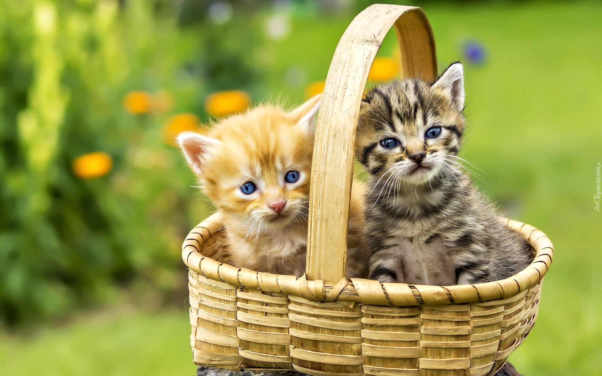 Edytor tapety: Dwa, Małe, Kotki, Pleciony, Koszyk