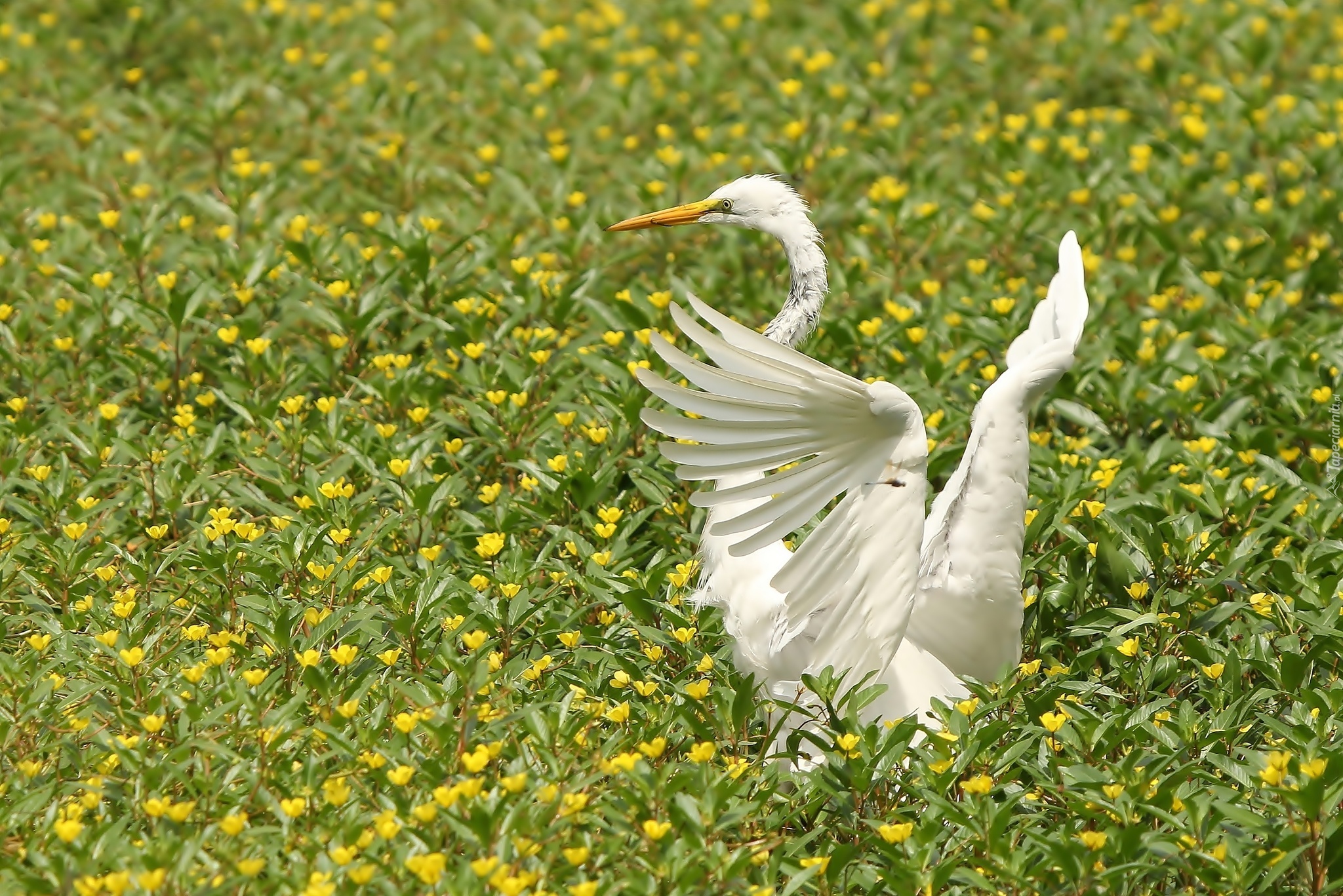 Edytor tapety: Biała, Czapla, Łąka