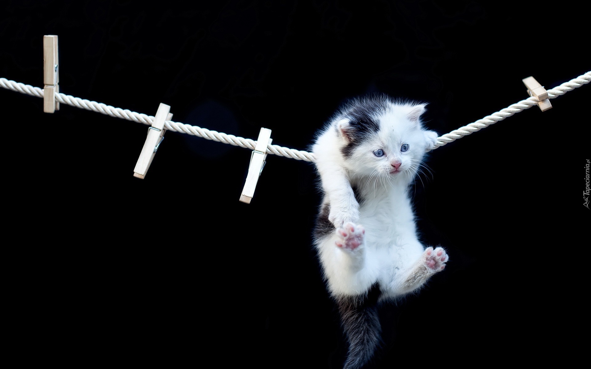 Edytor tapety: Mały, Kotek, Sznurek, Zabawa