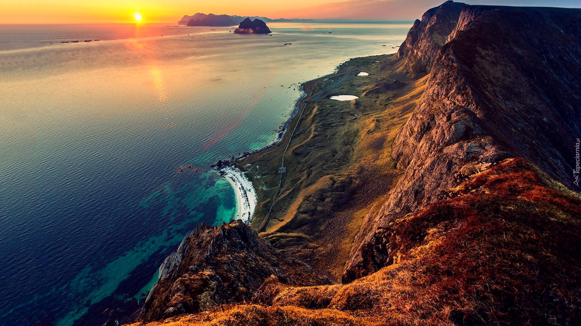 Edytor tapety: Morze, Zachód Słońca, Wybrzeże, Klif