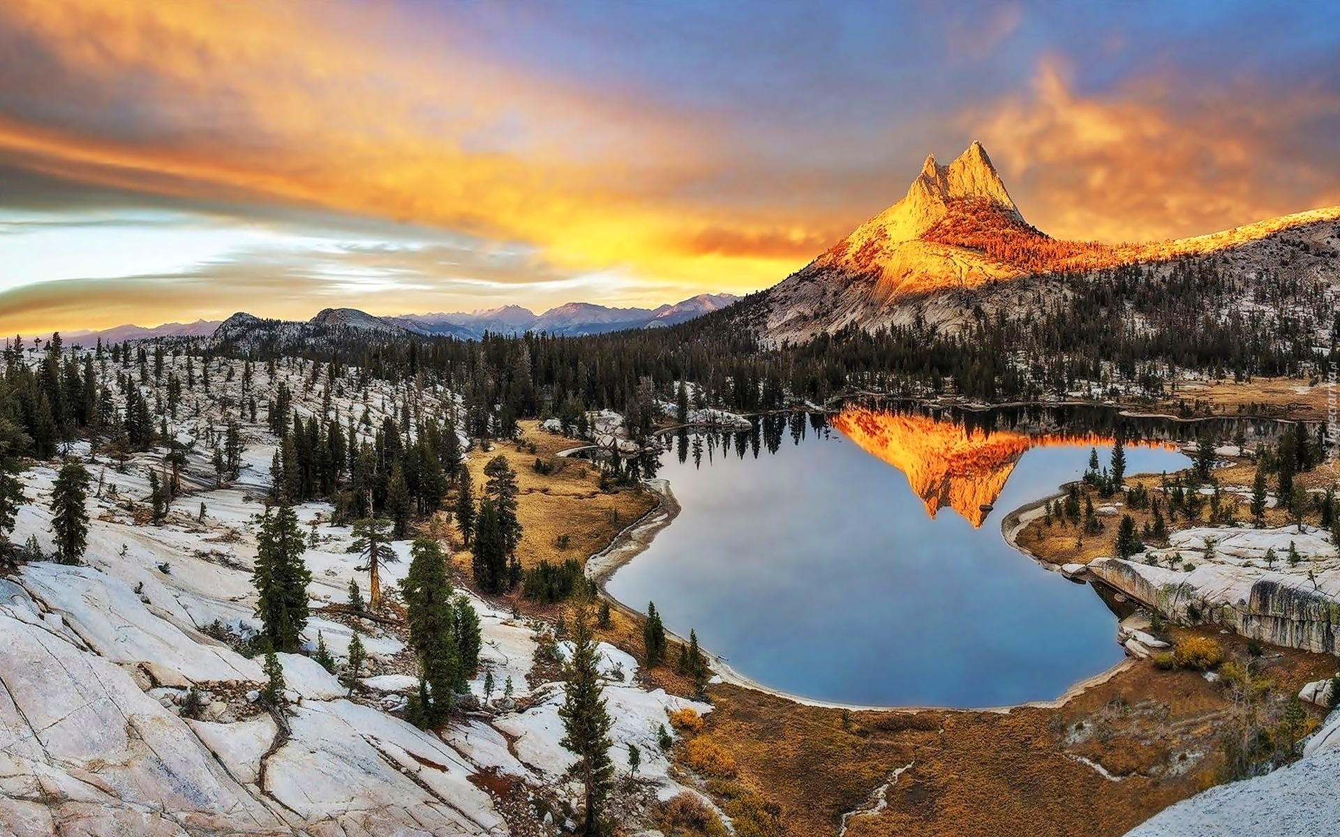 Edytor tapety: Stany Zjednoczone, Stan Kalifornia, Park Narodowy Yosemite, Góry, Lasy, Chmury, Jezioro