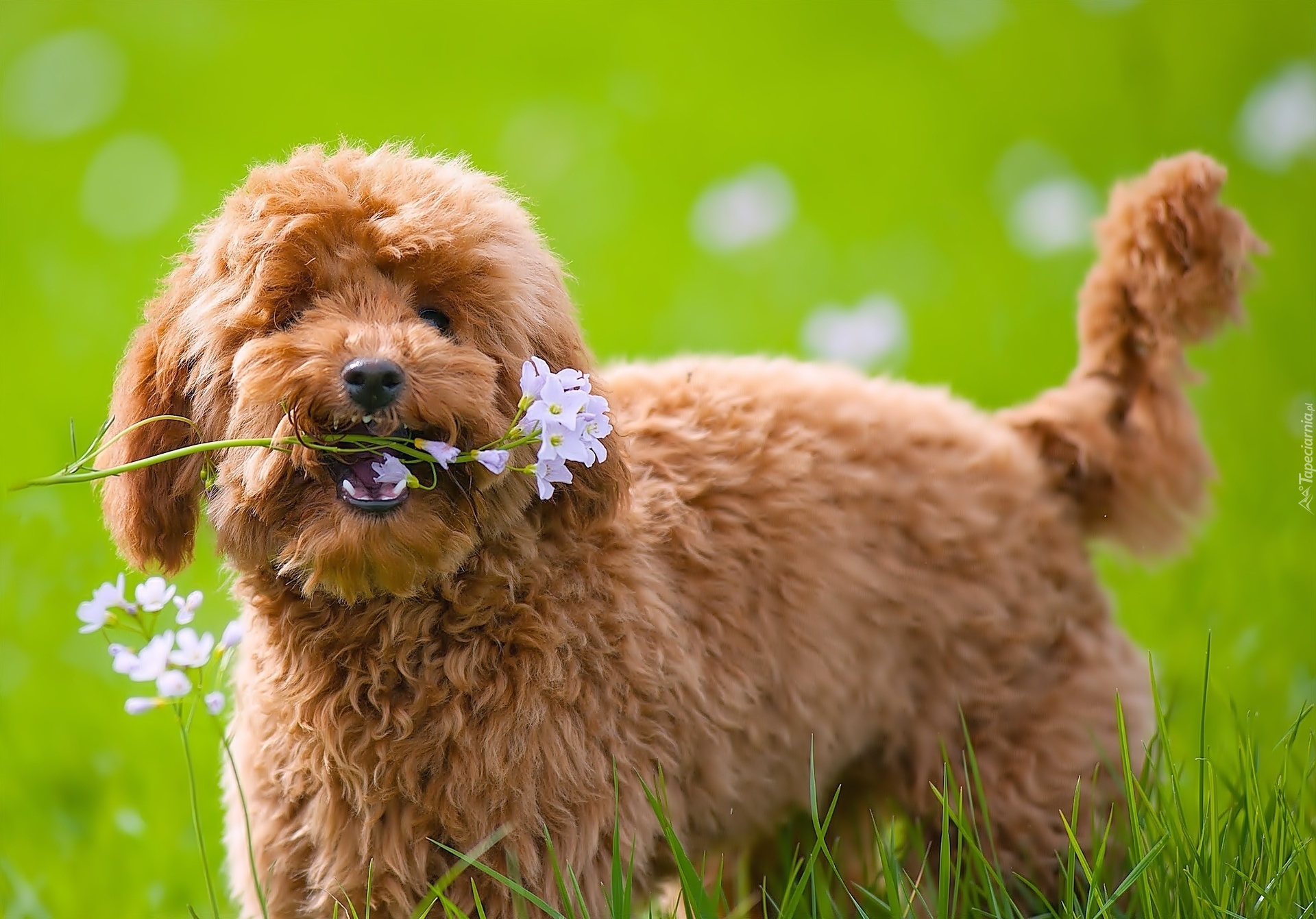 Edytor tapety: Brązowy, Pies, Kwiatek, Trawa