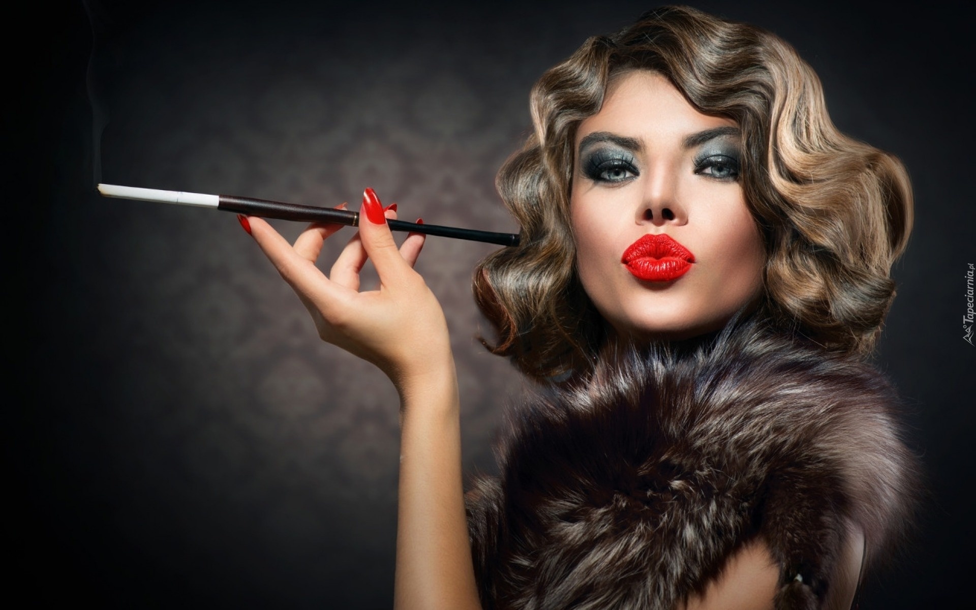 Edytor tapety: Kobieta, Brunetka, Makijaż, Papieros