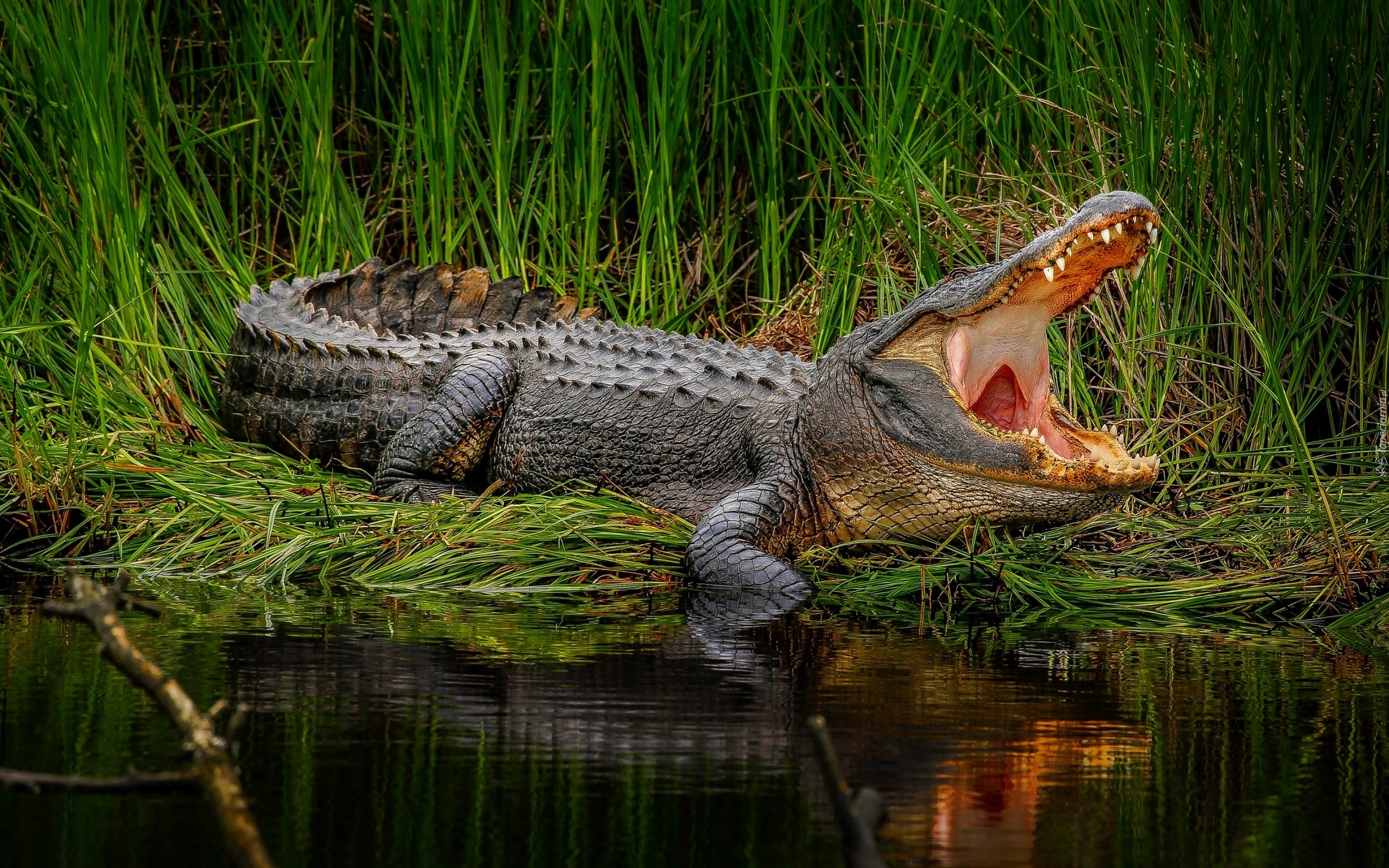 Edytor tapety: Krokodyl, Paszcza, Woda, Szuwary