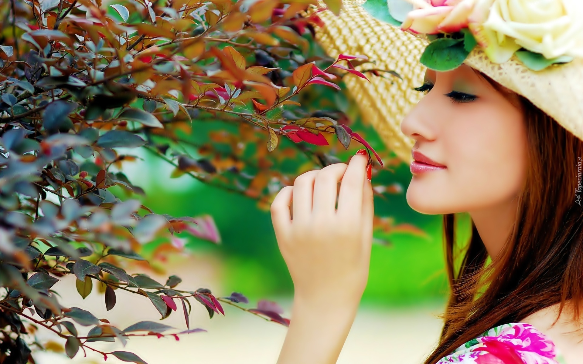 Edytor tapety: Kobieta, Kapelusz, Gałązki