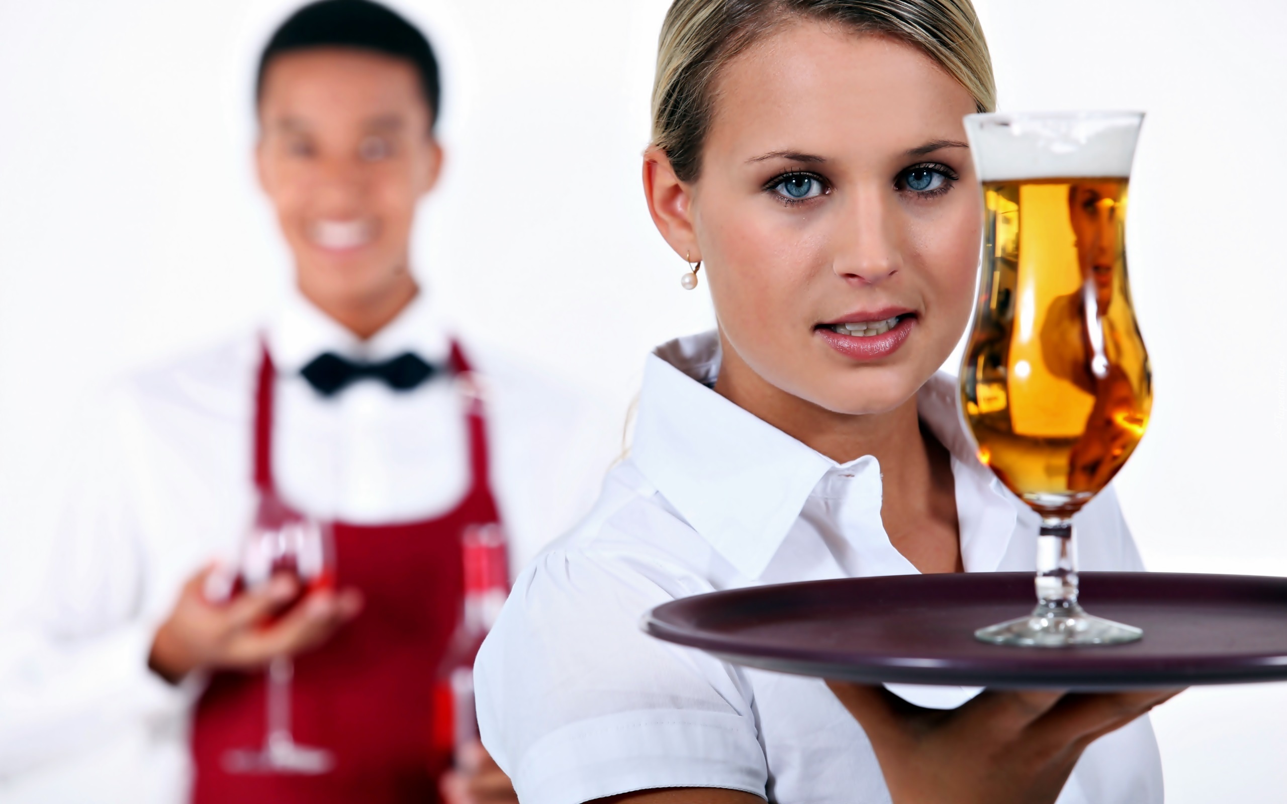 Edytor tapety: Kelnerka, Taca, Pokal, Piwo, Rozmycie
