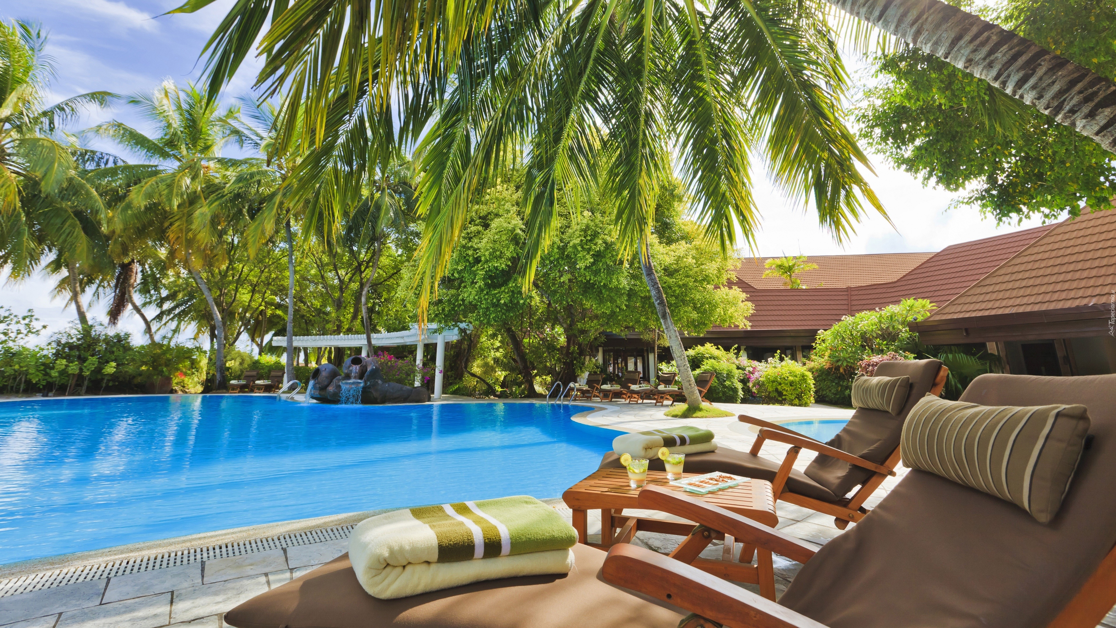 Edytor tapety: Basen, Fotele, Palmy, Wakacje