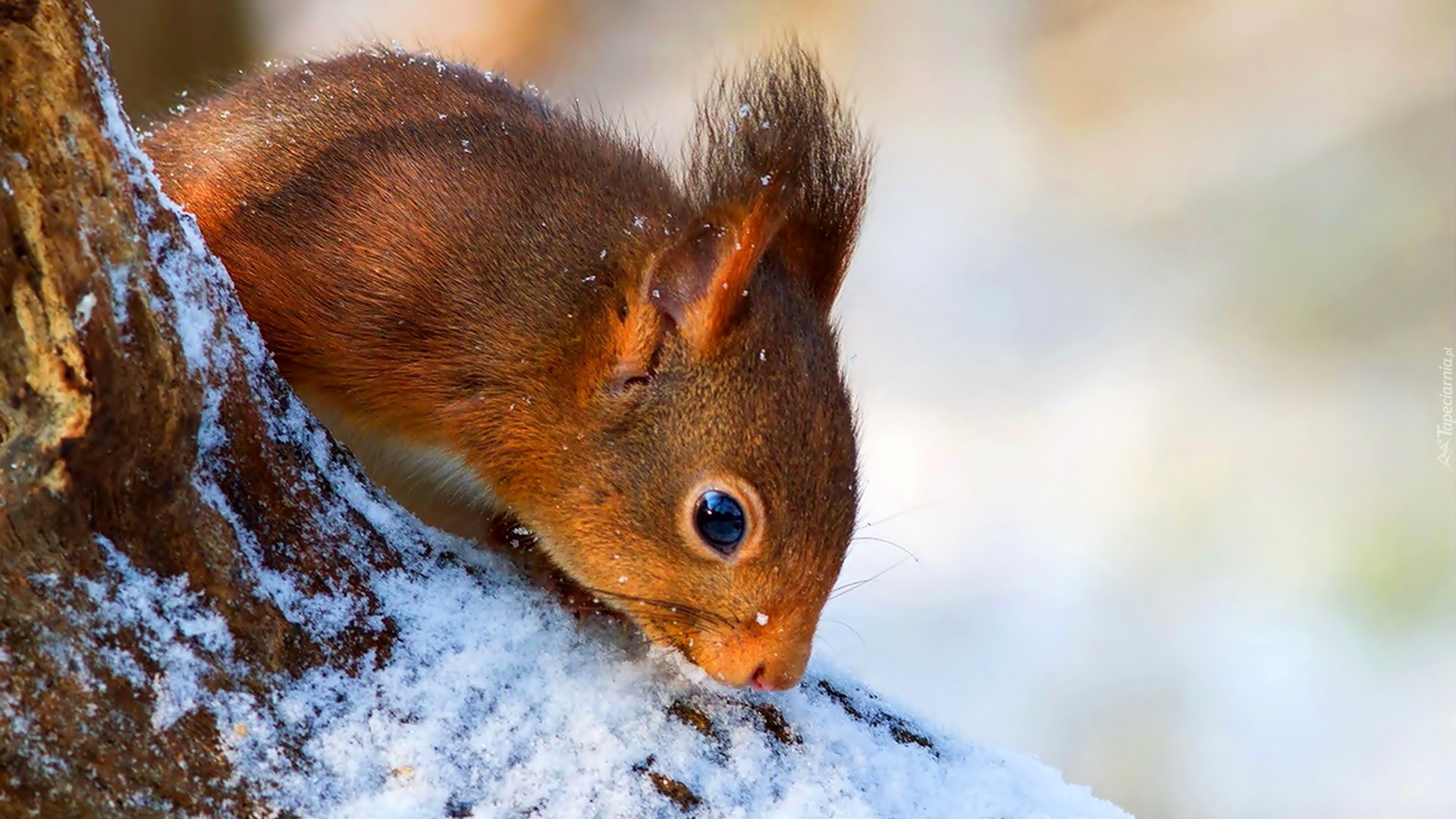 Edytor tapety: Wiewiórka, Ośnieżony, Pień, Drzewa