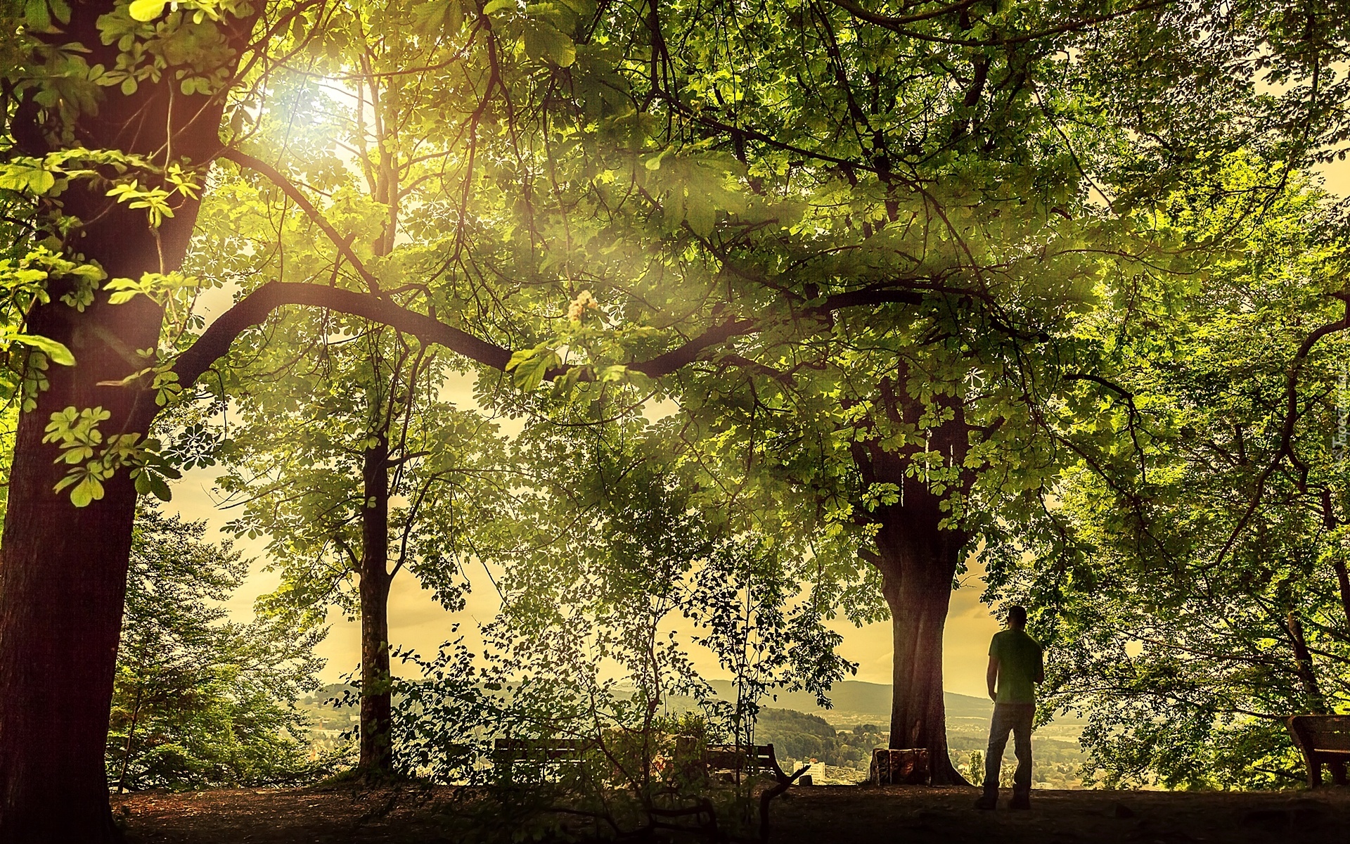 Edytor tapety: Park, Przebijające, Światło, Mężczyzna, Drzewa