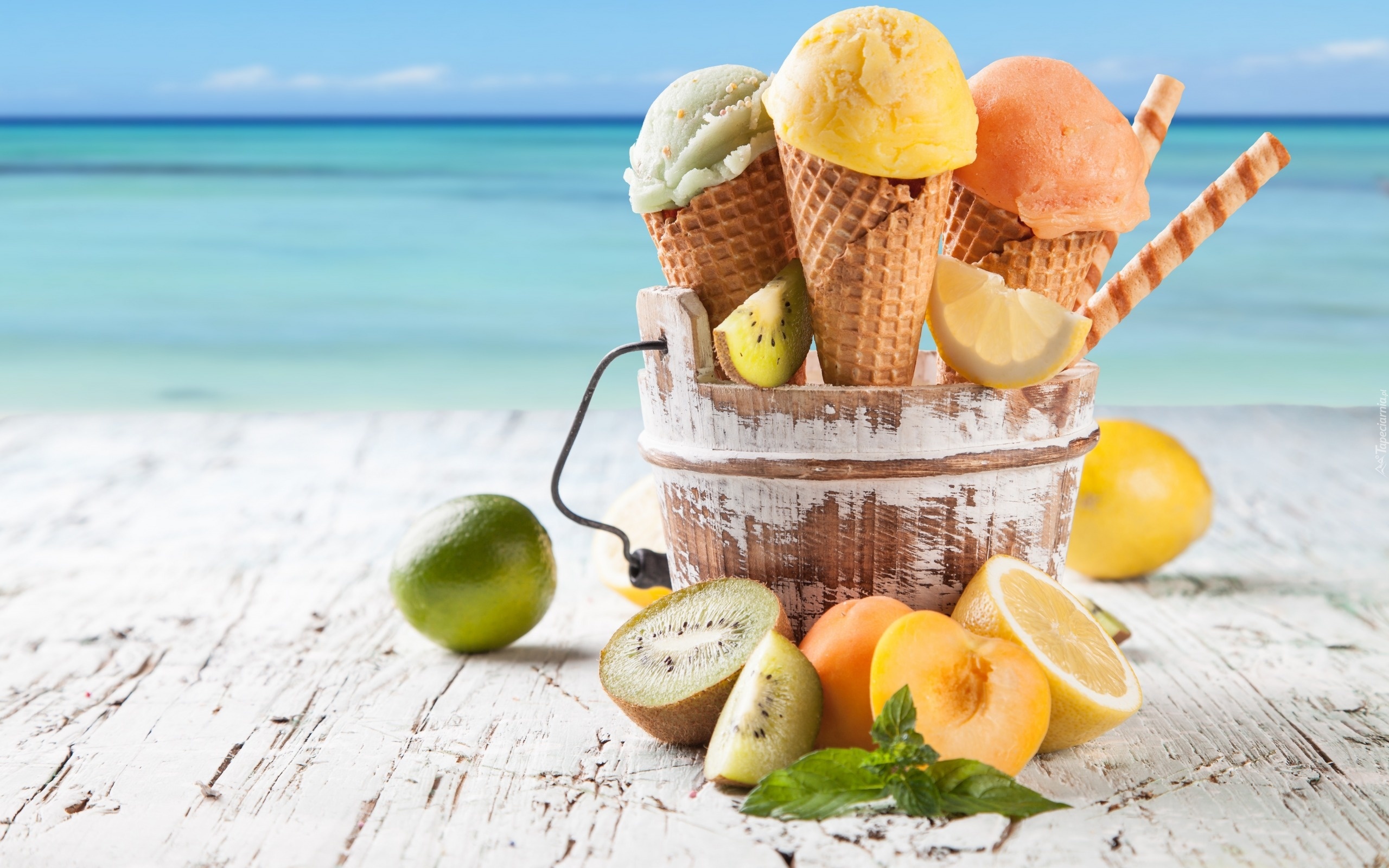 Edytor tapety: Lody, Morze, Lato, Owoce