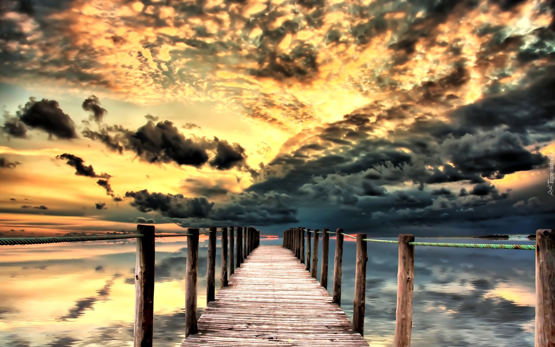 Edytor tapety: Morze, Zachód Słońca, Chmury, Molo