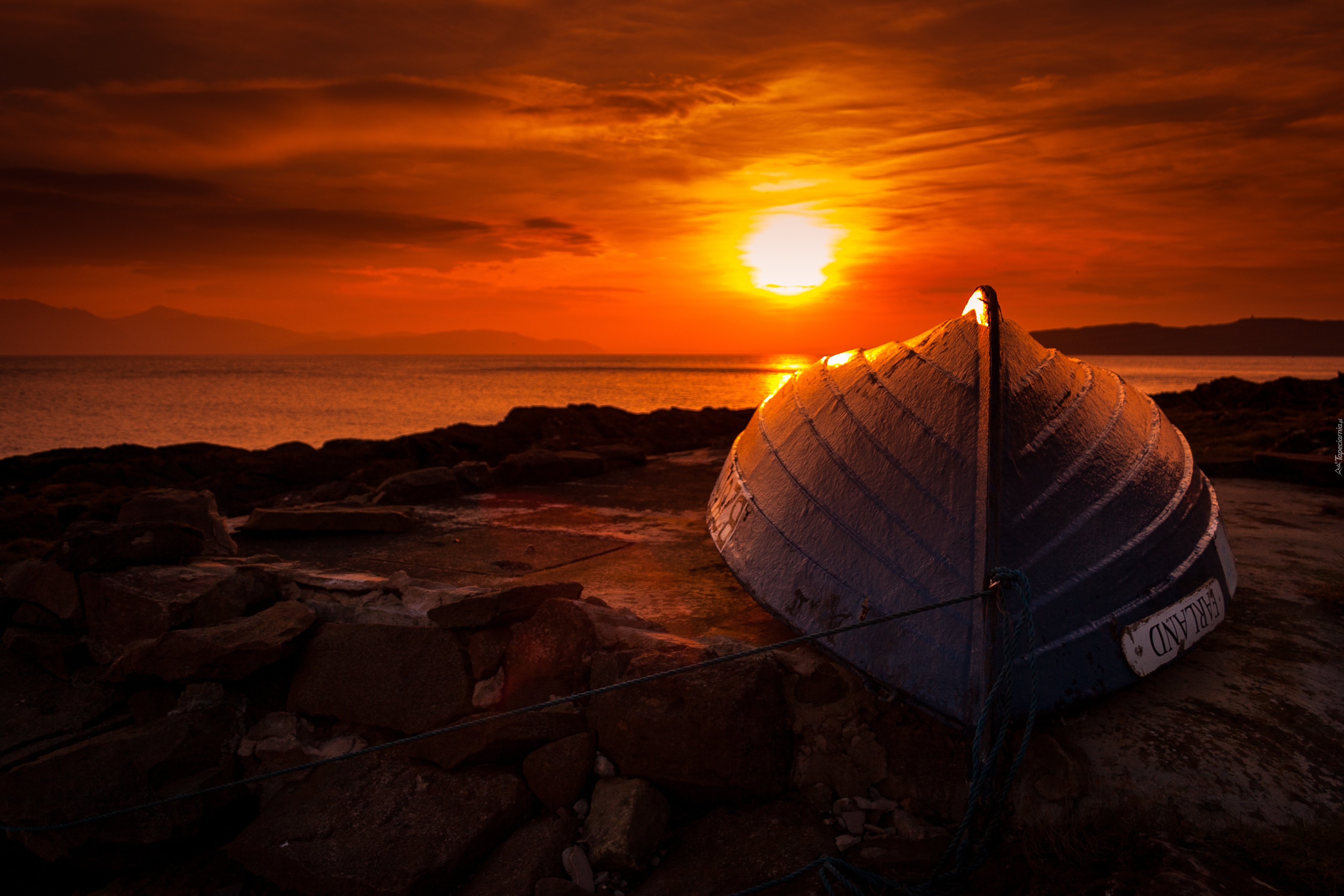 Edytor tapety: Zachód Słońca, Morze, Łódka