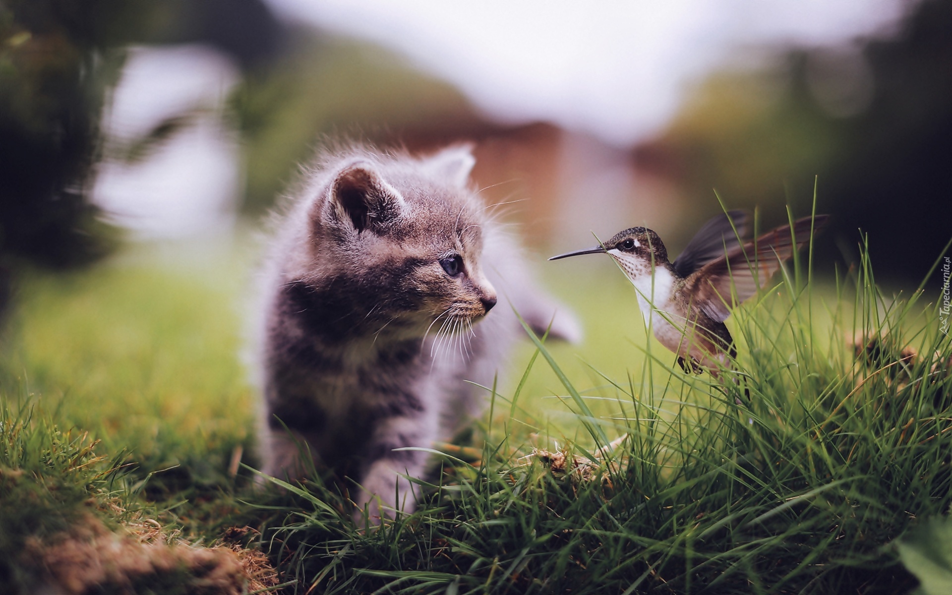 Edytor tapety: Kot, Kotek, Ptak, Koliber