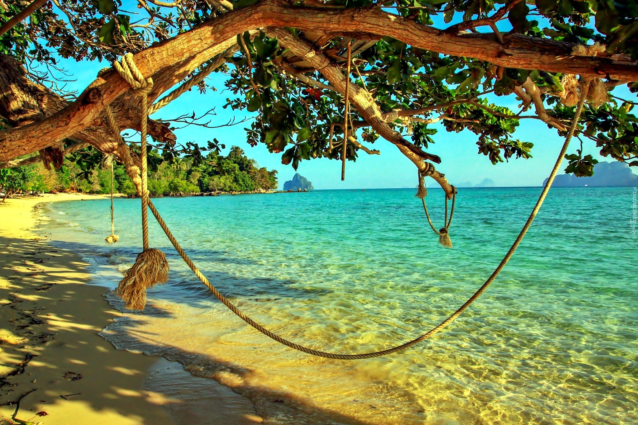 Edytor tapety: Morze, Wybrzeże, Drzewa, Światło, Cień