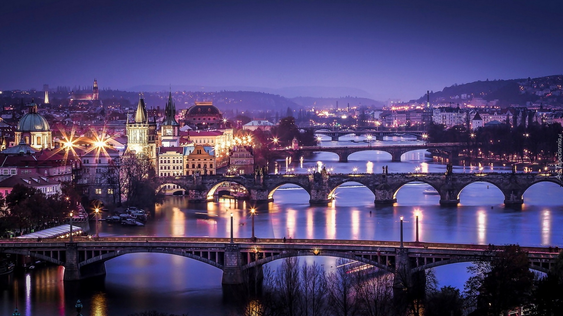 Edytor tapety: Rzeka, Mosty, Zdjęcie, Miasta, Latarnie, Czechy, Praga