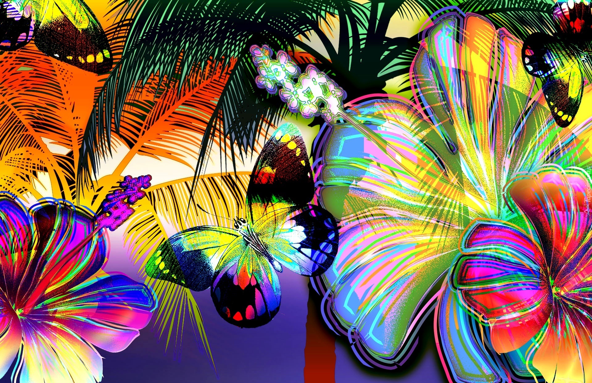 Edytor tapety: Kolorowe, Kwiaty, Motyle, Grafika 2D