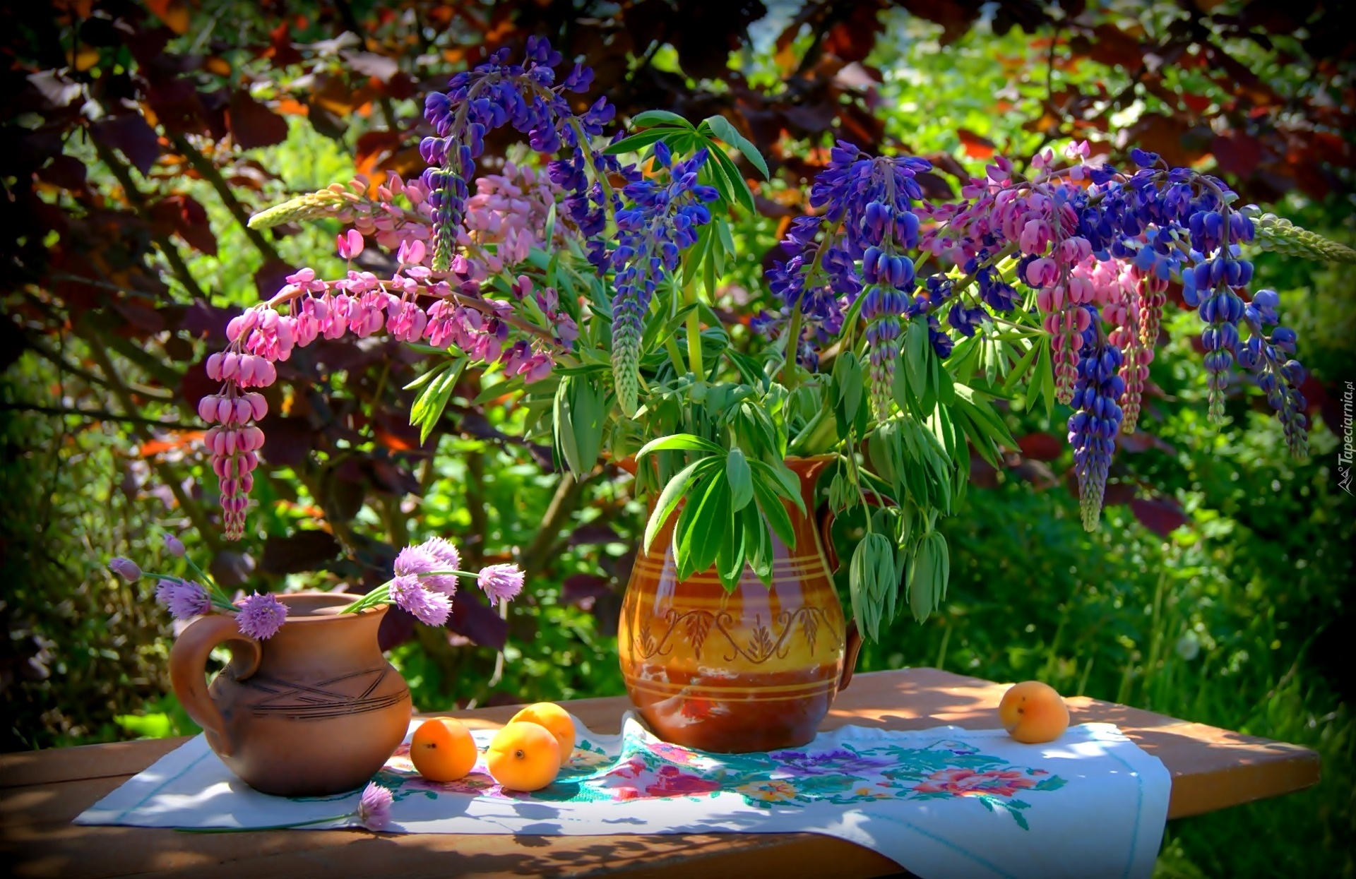 Edytor tapety: Łubin, Bukiet Kwiatów, Owoce, Przebijające Światło