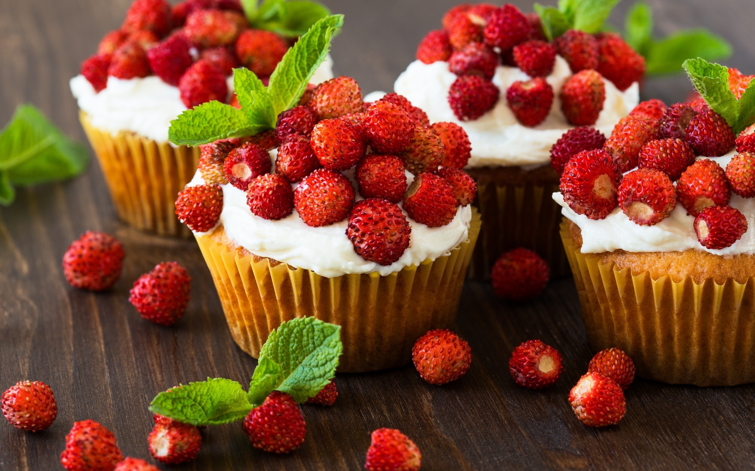 Edytor tapety: Babeczki, Śmietana, Poziomki, Listki Mięty