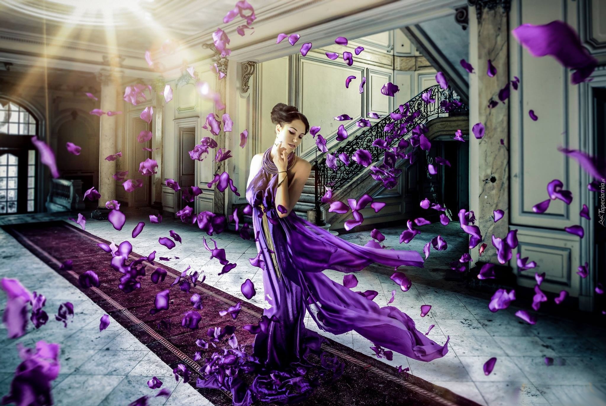 Edytor tapety: Kobieta, Biżuteria, Sukienka, Dywan, Pałac, Płatki Kwiatów