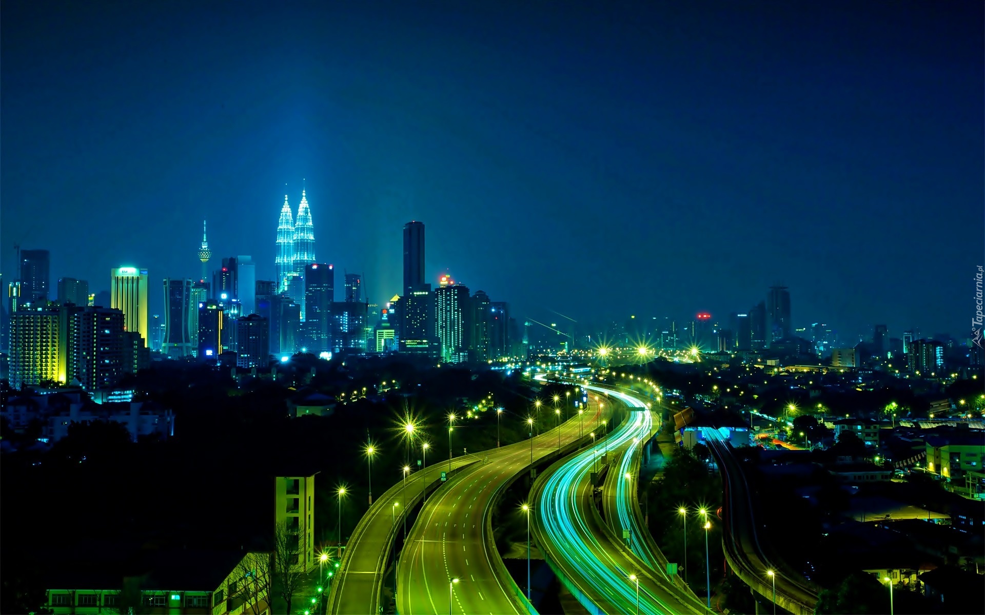 Edytor tapety: Drapacze Chmur, Petronas Towers, Nocna, Panorama, Kuala Lumpur