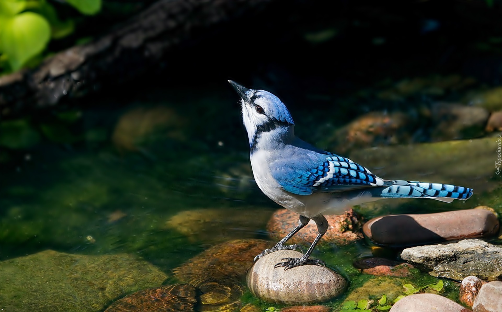 Edytor tapety: Modrosójka, Woda, Kamienie
