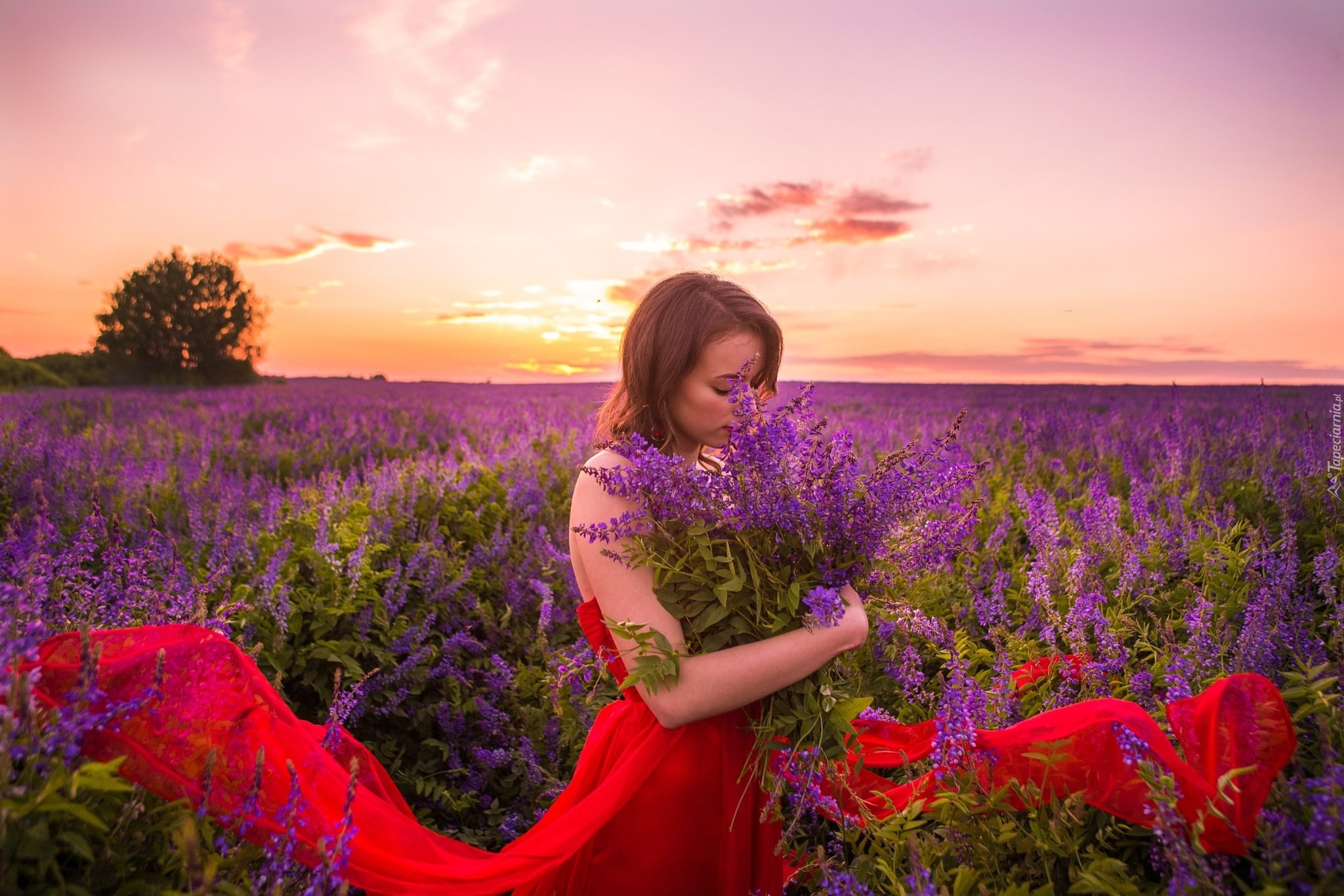 Edytor tapety: Kobieta, Kwiaty, Zachód Słońca, Lato