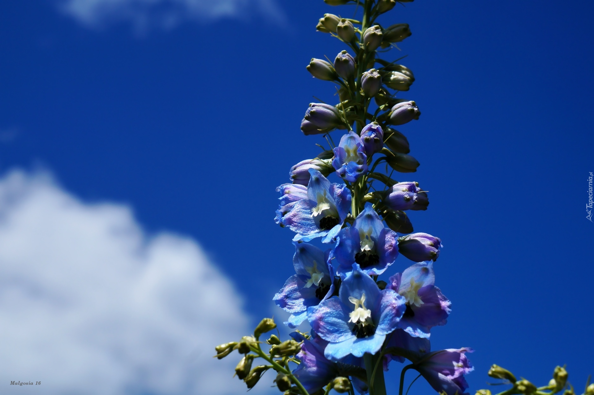 Edytor tapety: Niebieskie, Kwiaty, Ostróżka, Niebo, Chmury