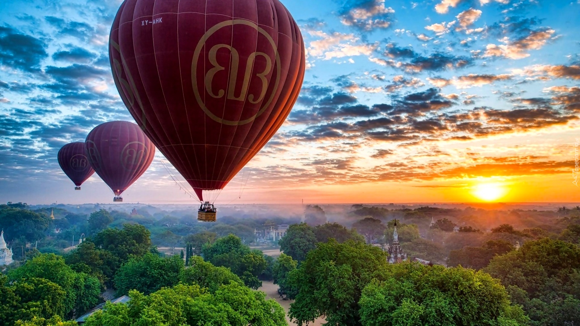 Edytor tapety: Zachód Słońca, Balony, Niebo, Chmury