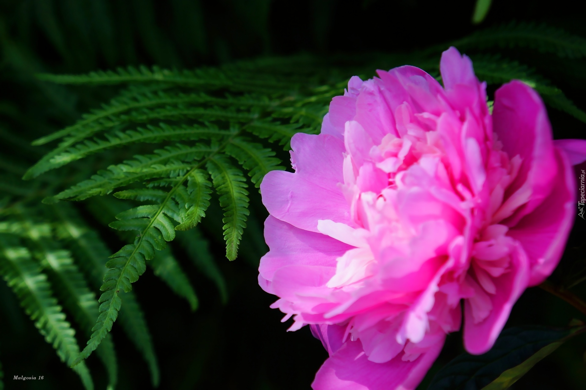 Edytor tapety: Kwiat, Piwonia, Liście, Paproć