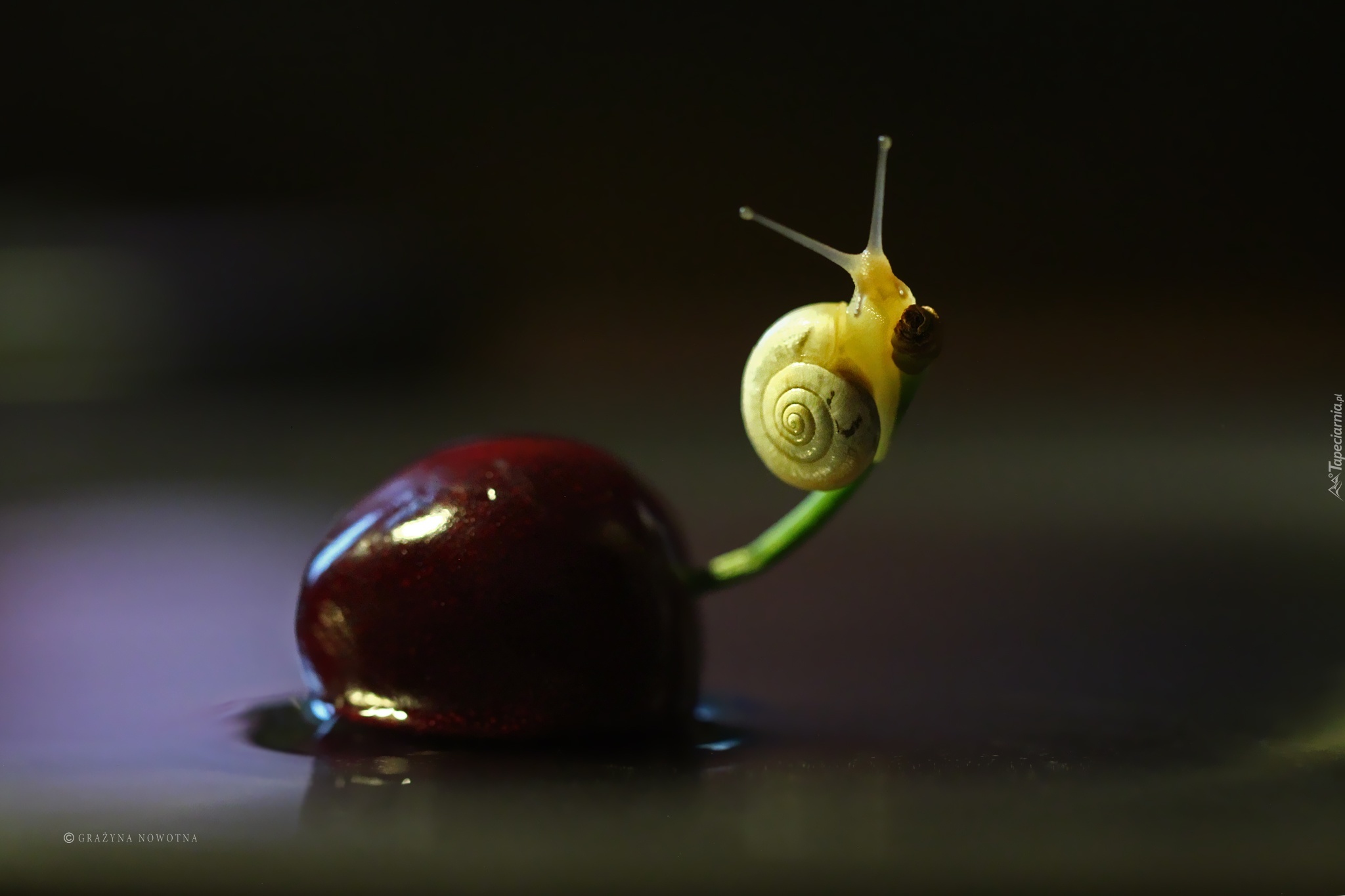 Edytor tapety: Mały, Ślimak, Czereśnia, Owoc