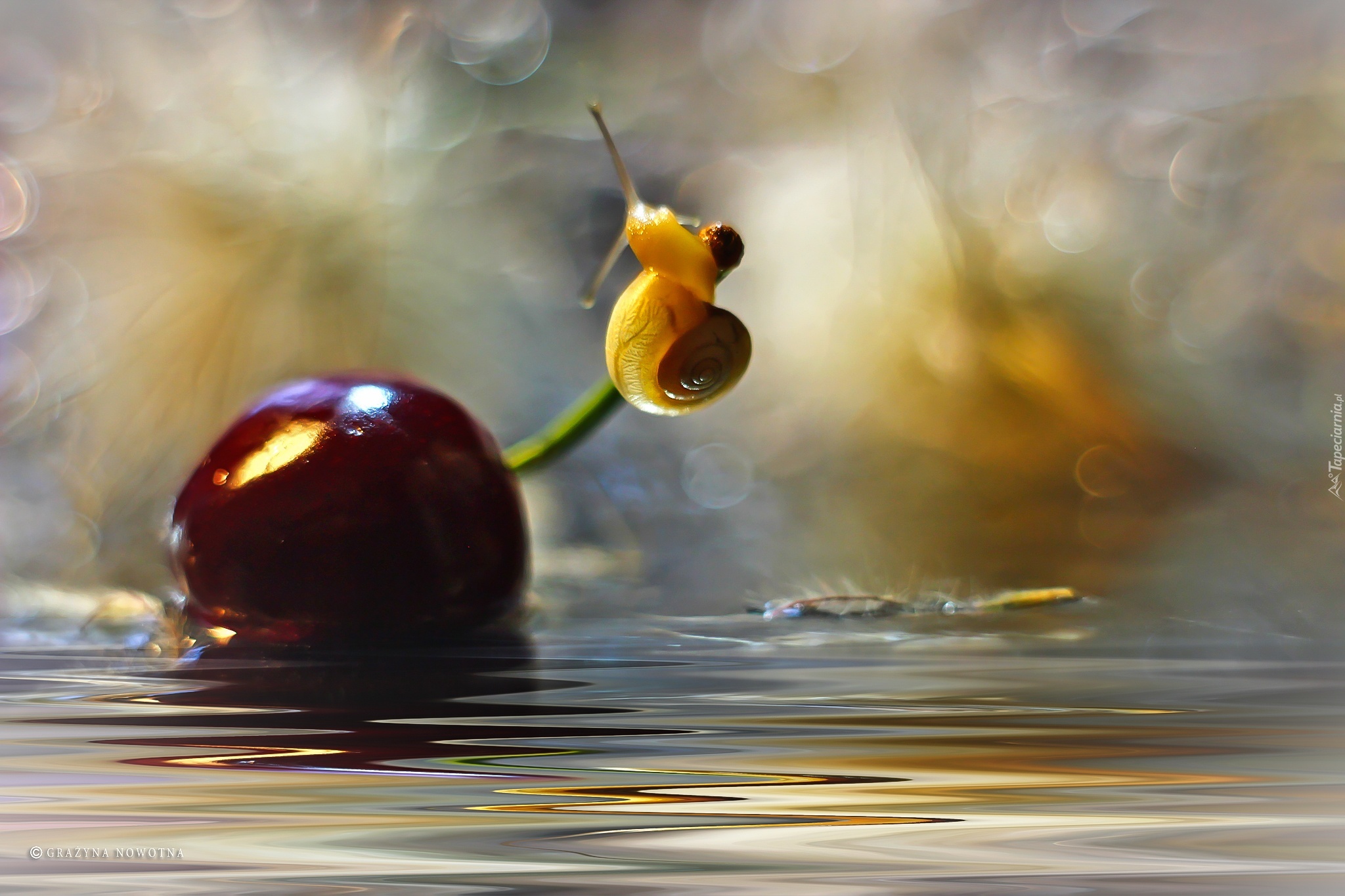 Edytor tapety: Czereśnia, Owoc, Ślimak, Woda
