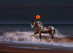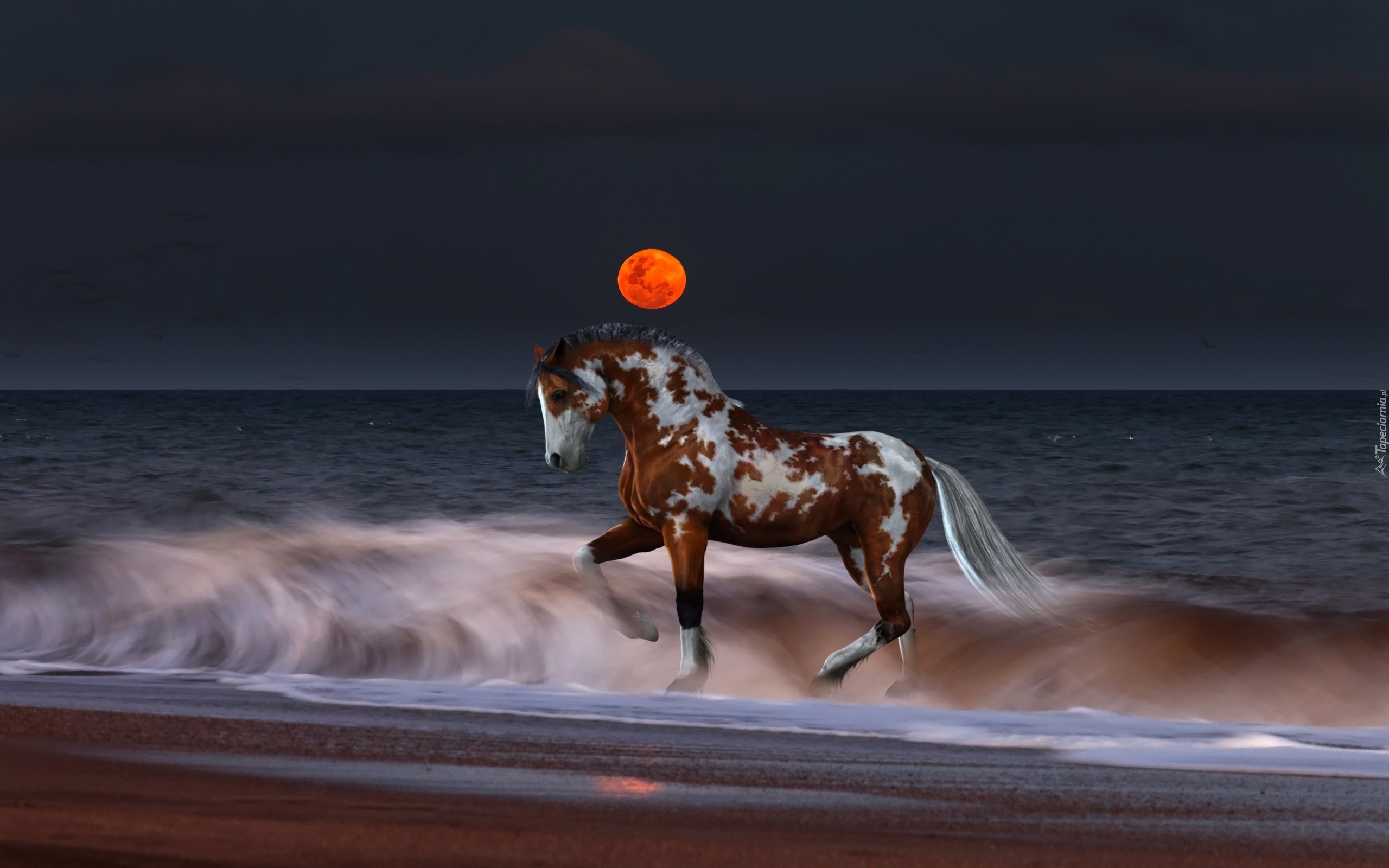 Edytor tapety: Koń, Plaża, Zachód Słońca, Morze