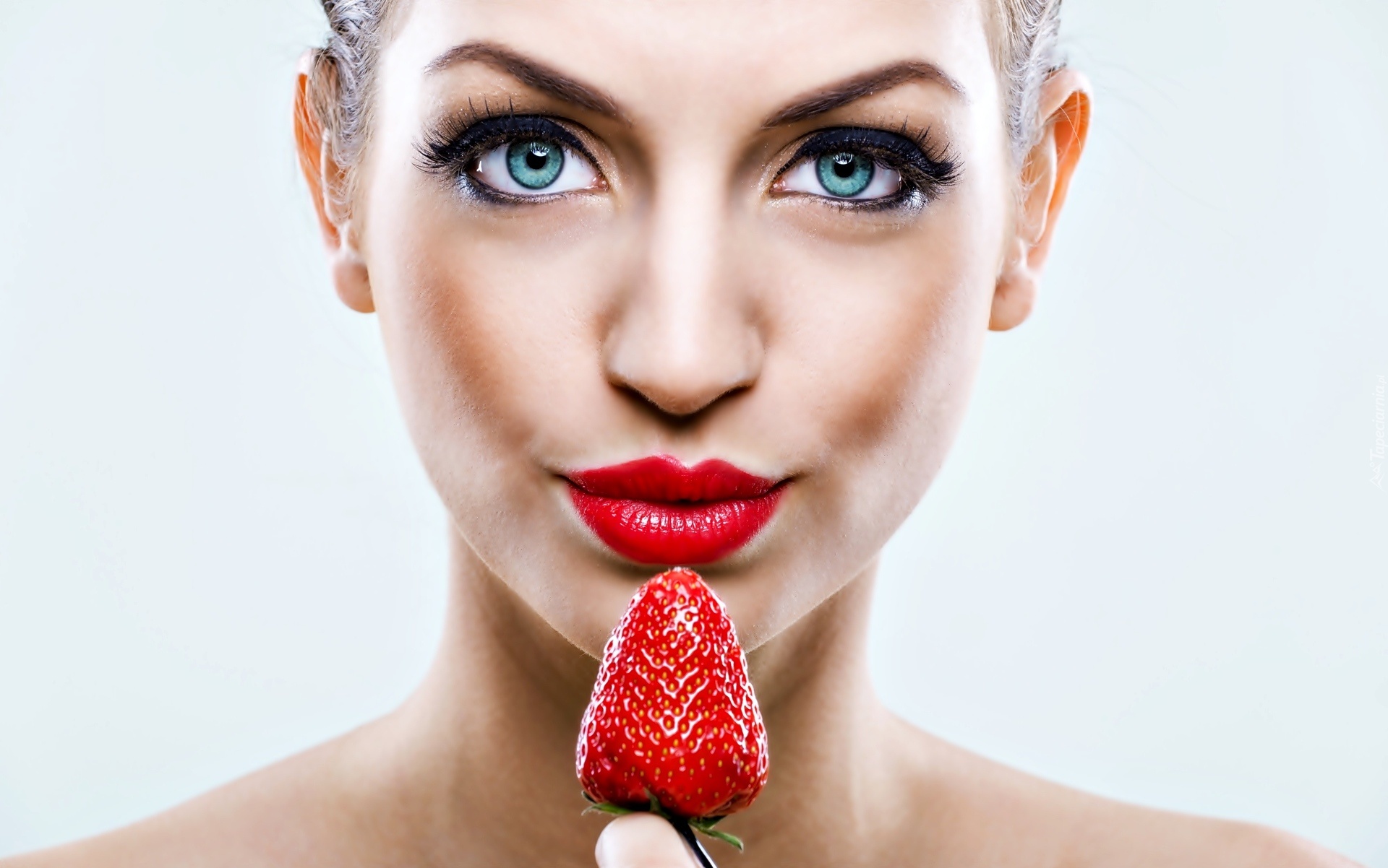 Edytor tapety: Kobieta, Usta, Truskawka