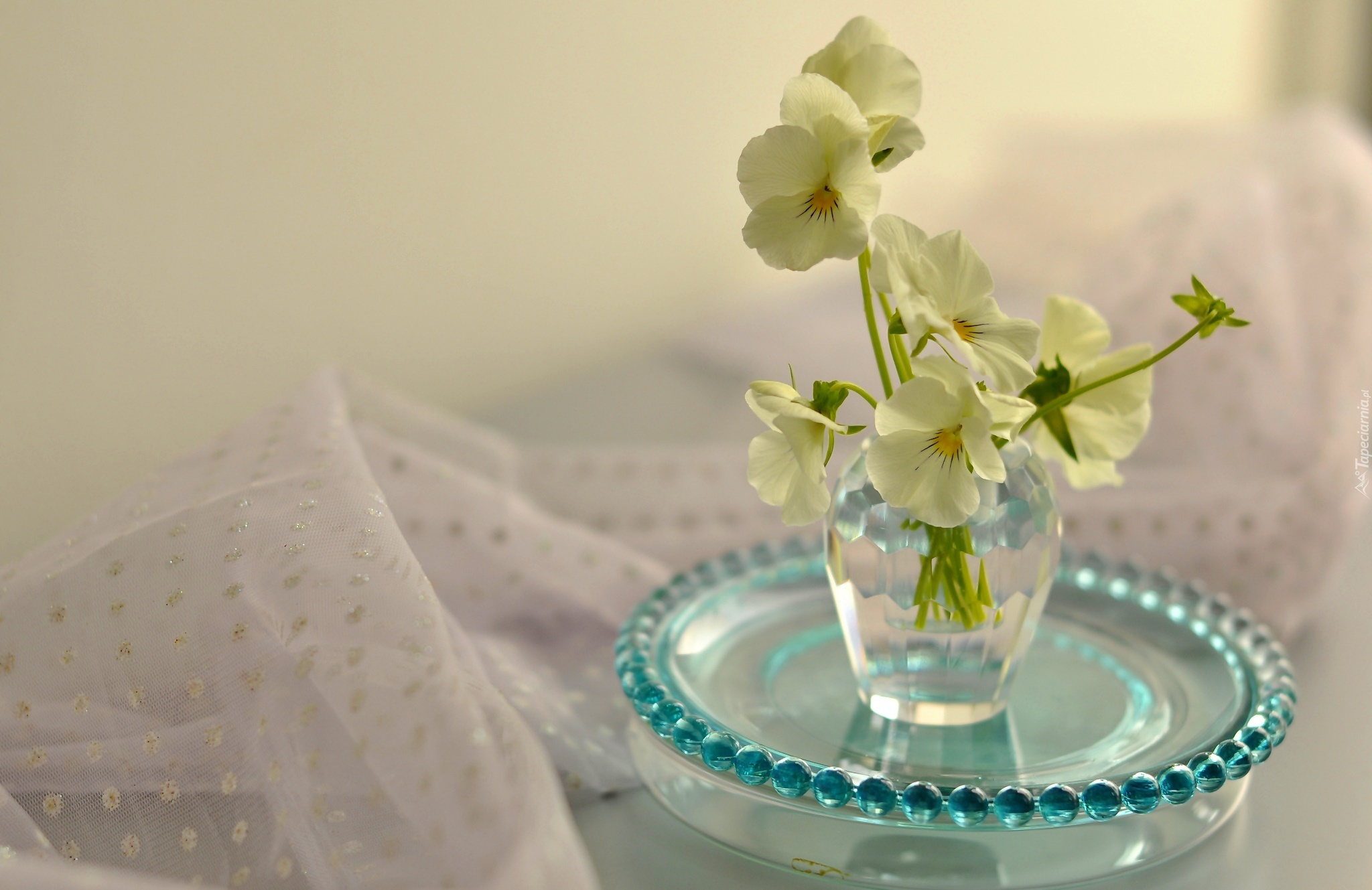 Edytor tapety: Białe, Bratki, Wazonik, Dekoracja