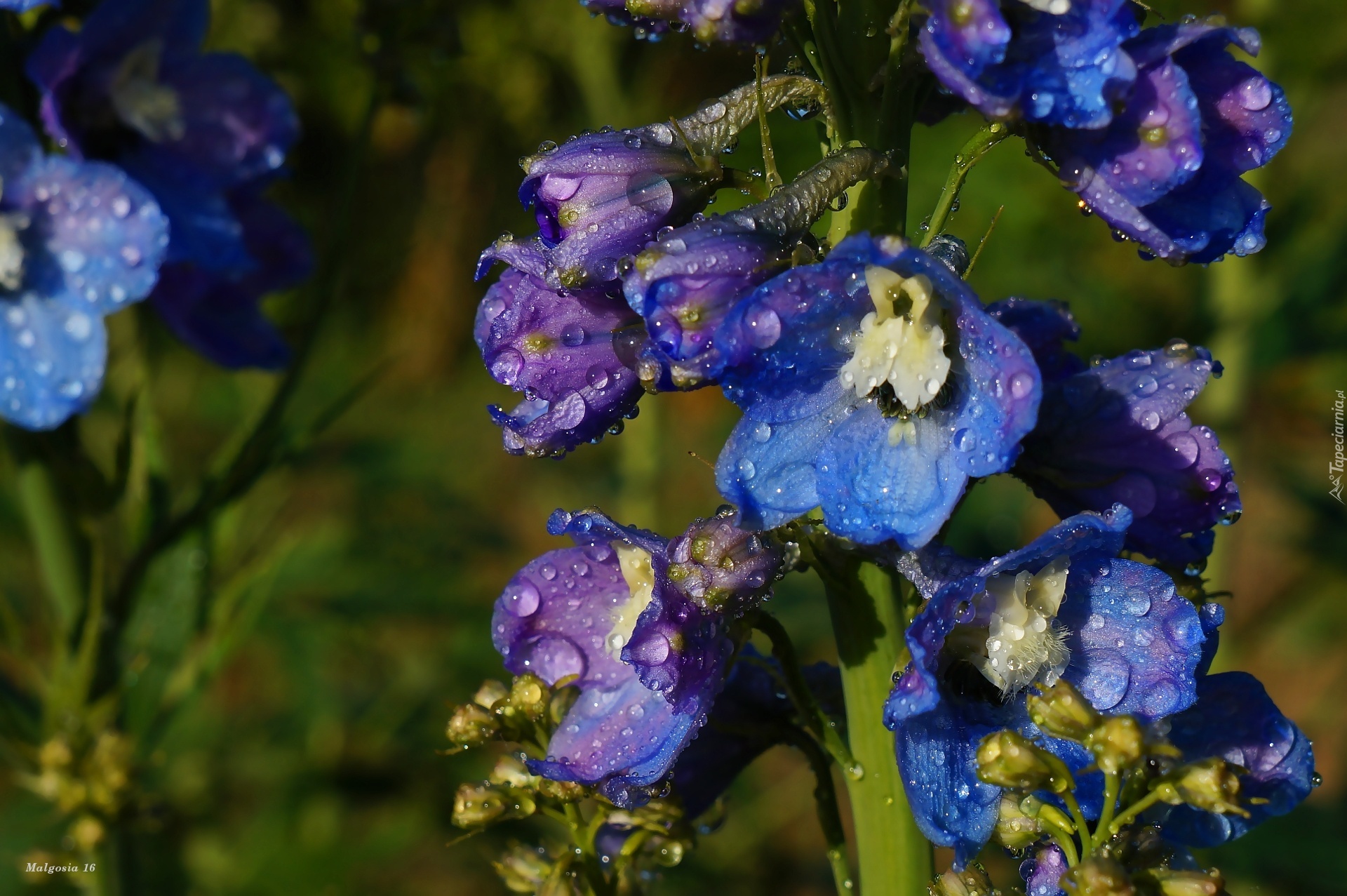 Edytor tapety: Kwiaty, Niebieska, Ostróżka, Krople
