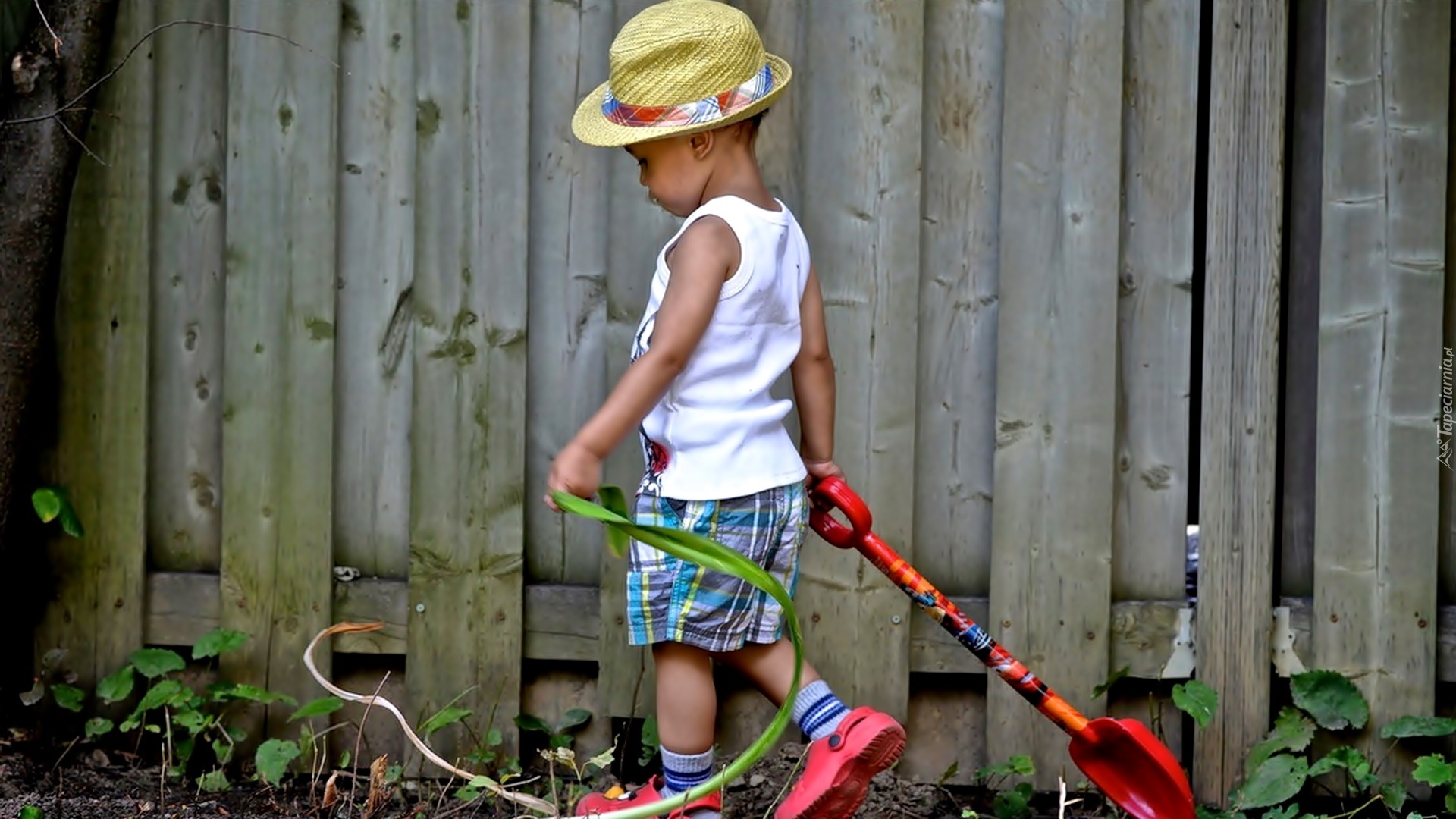 Edytor tapety: Chłopiec, Kapelusz, Łopatka, Płot