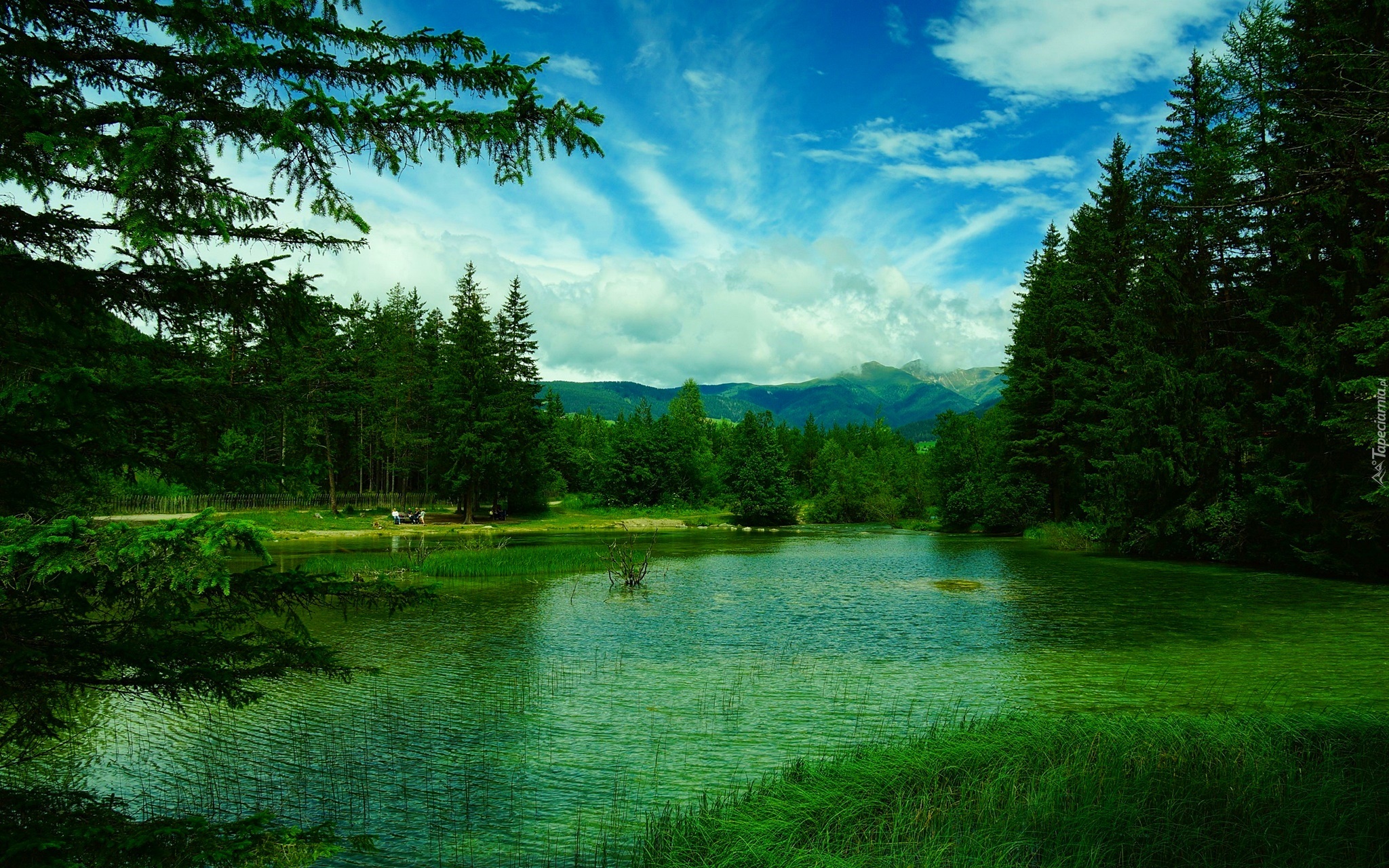 Edytor tapety: Jezioro, Toblach, Włochy, Lasy, Lato