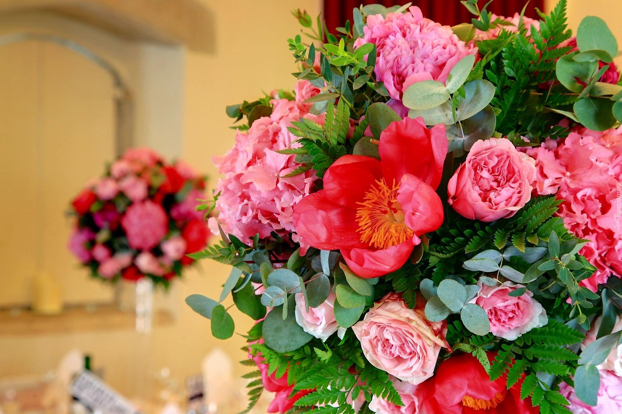 Edytor tapety: Piwonie, Róże, Bukiet kwiatów