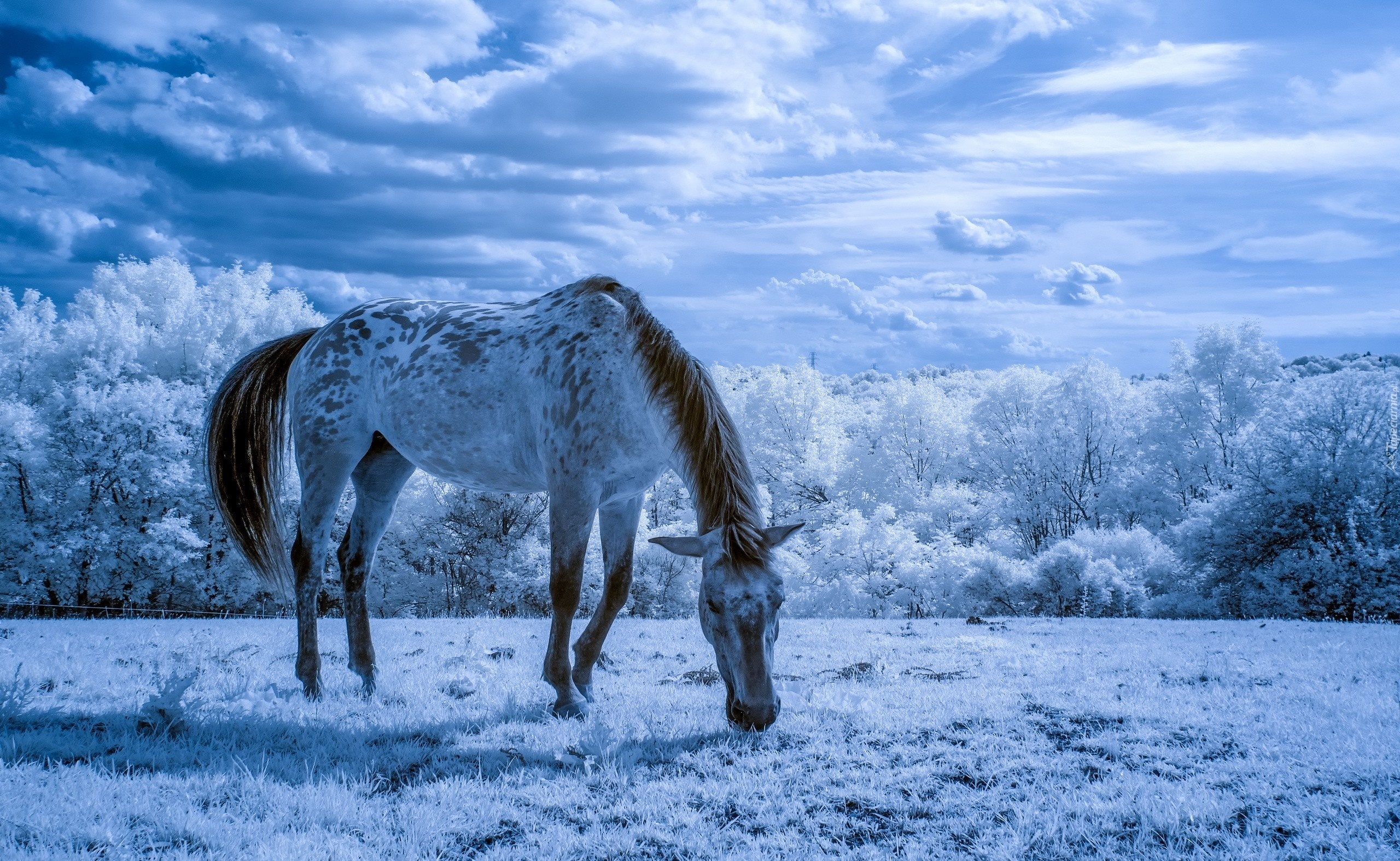 Edytor tapety: Koń, Łąka, Białe, Drzewa